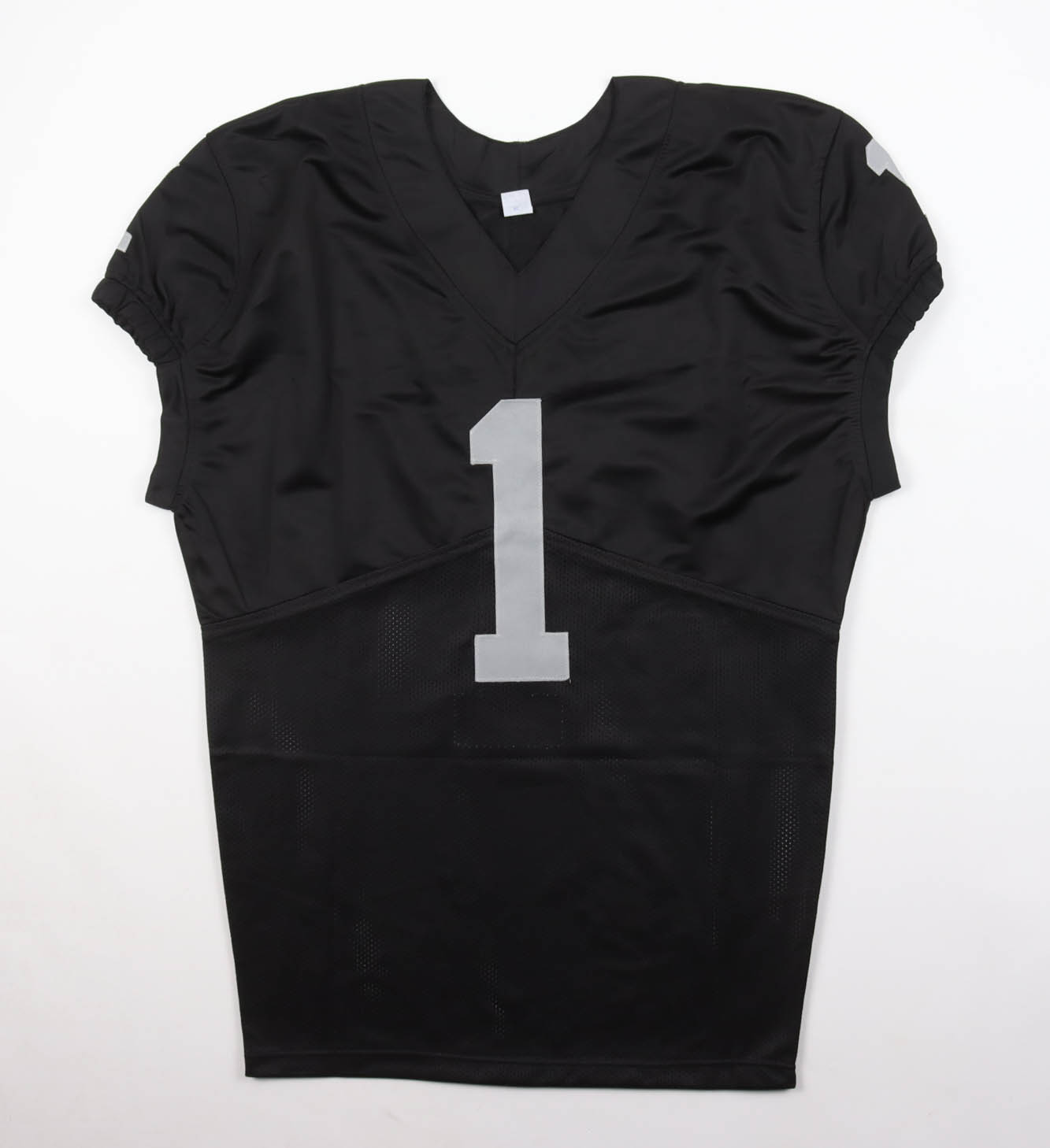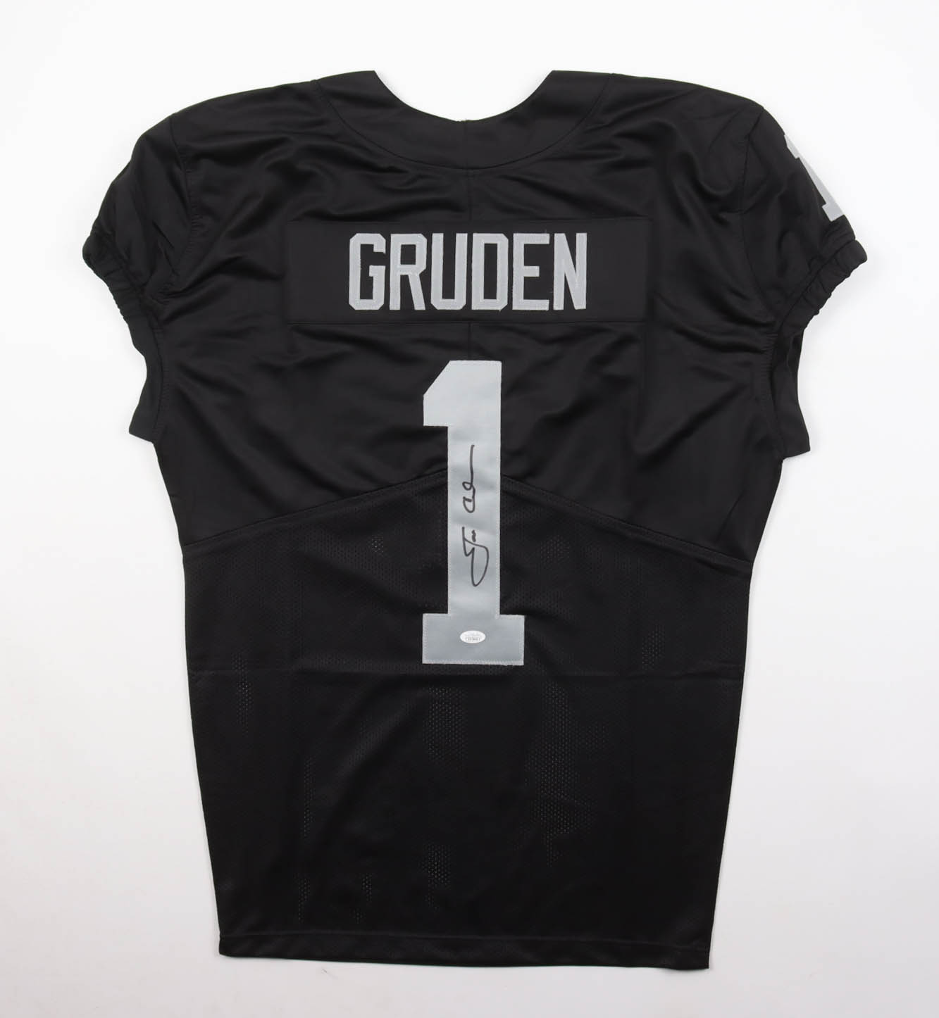 Custom jersey with everything sewn on, size XL. Hand-signed by Jon Gruden.