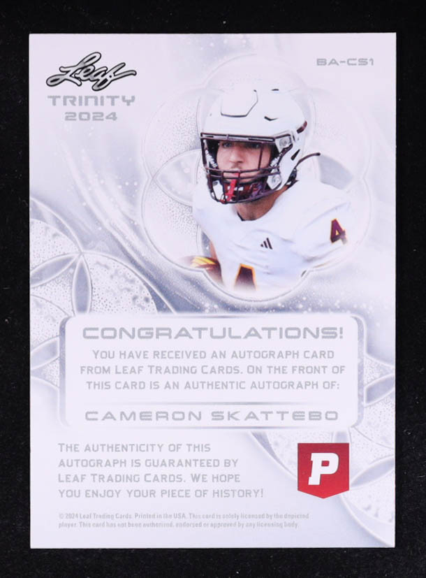 Cameron Skattebo 2024 Leaf Trinity x Pristine Auction Autographs #BACS1 RC