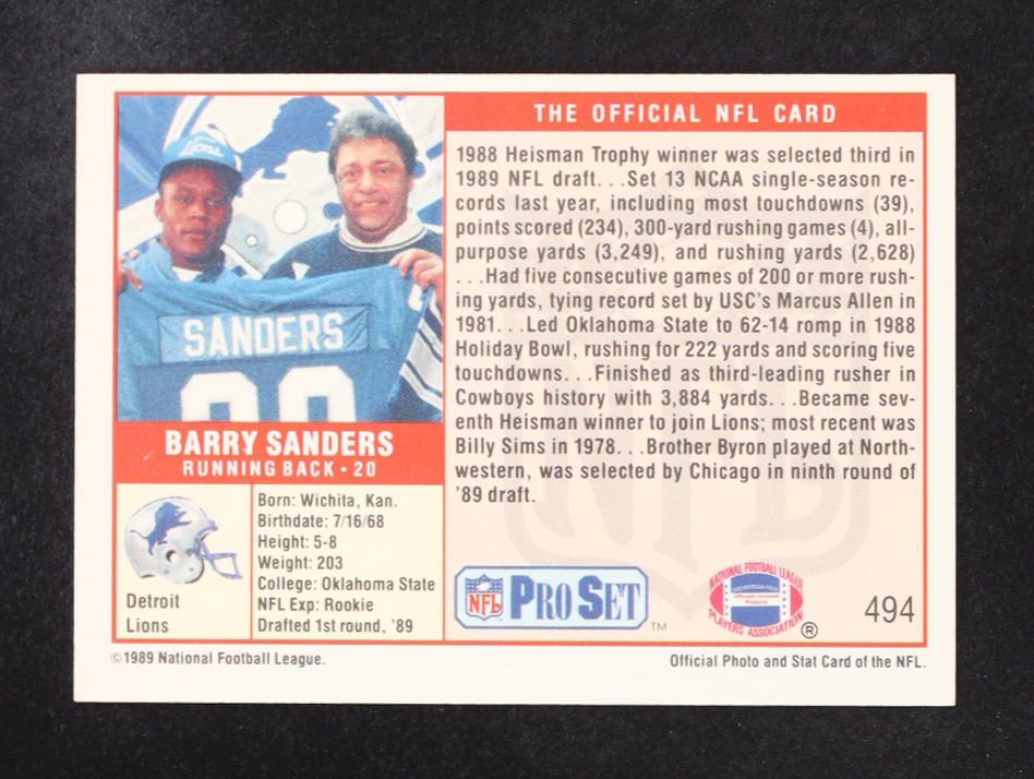 Barry Sanders 1989 Pro Set #494 RC
