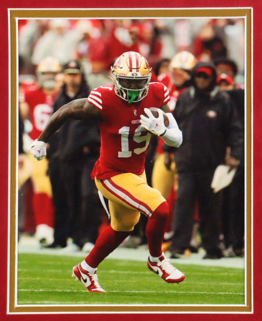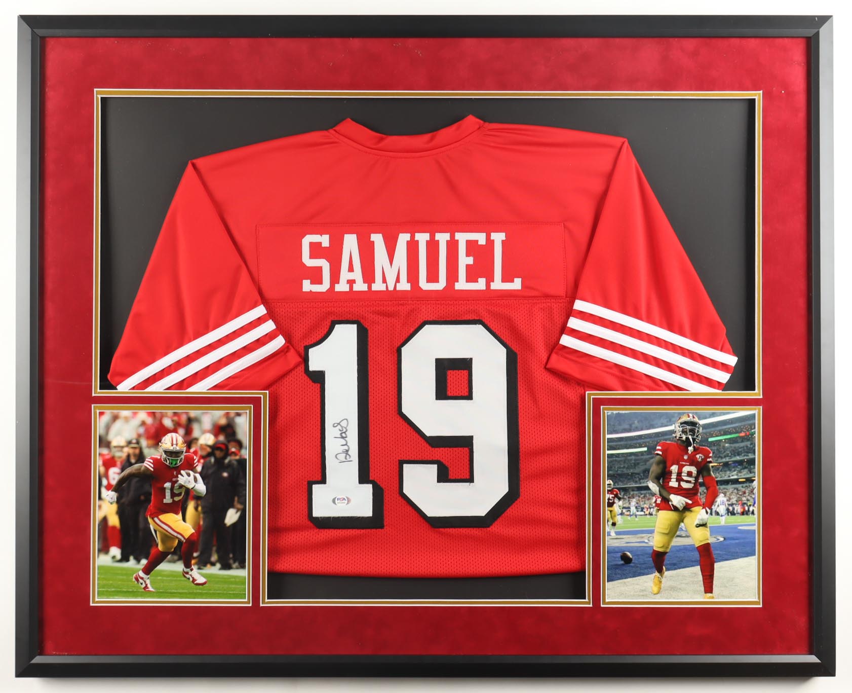 Custom frame measures approximately 34" x 42" in size and features a jersey that has been hand-signed by Deebo Samuel.