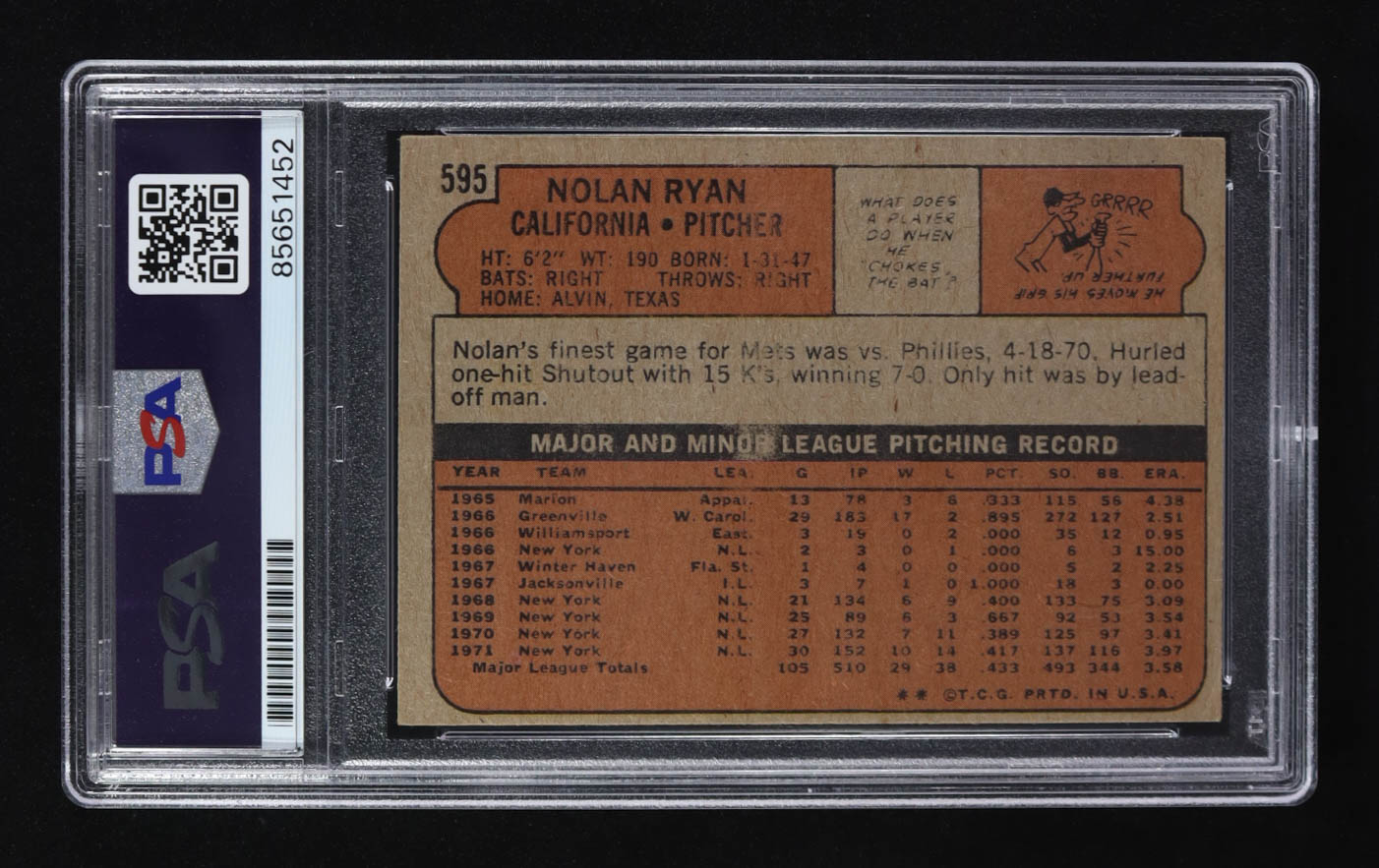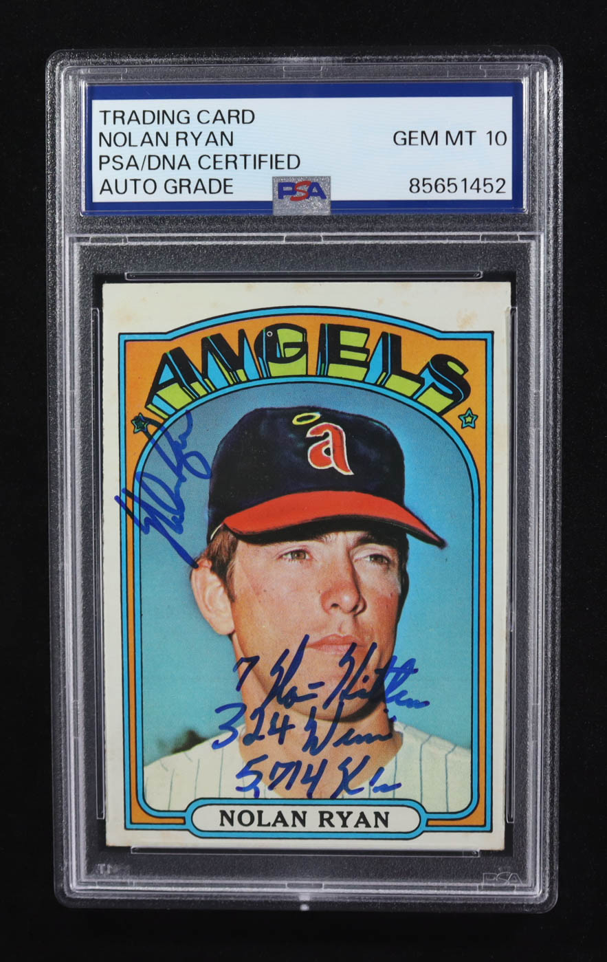 Nolan Ryan Signed 1972 Topps #595 Inscribed "7 No-Hitters", "324 Wins" & "5,714 K's" (PSA | Auto 10)