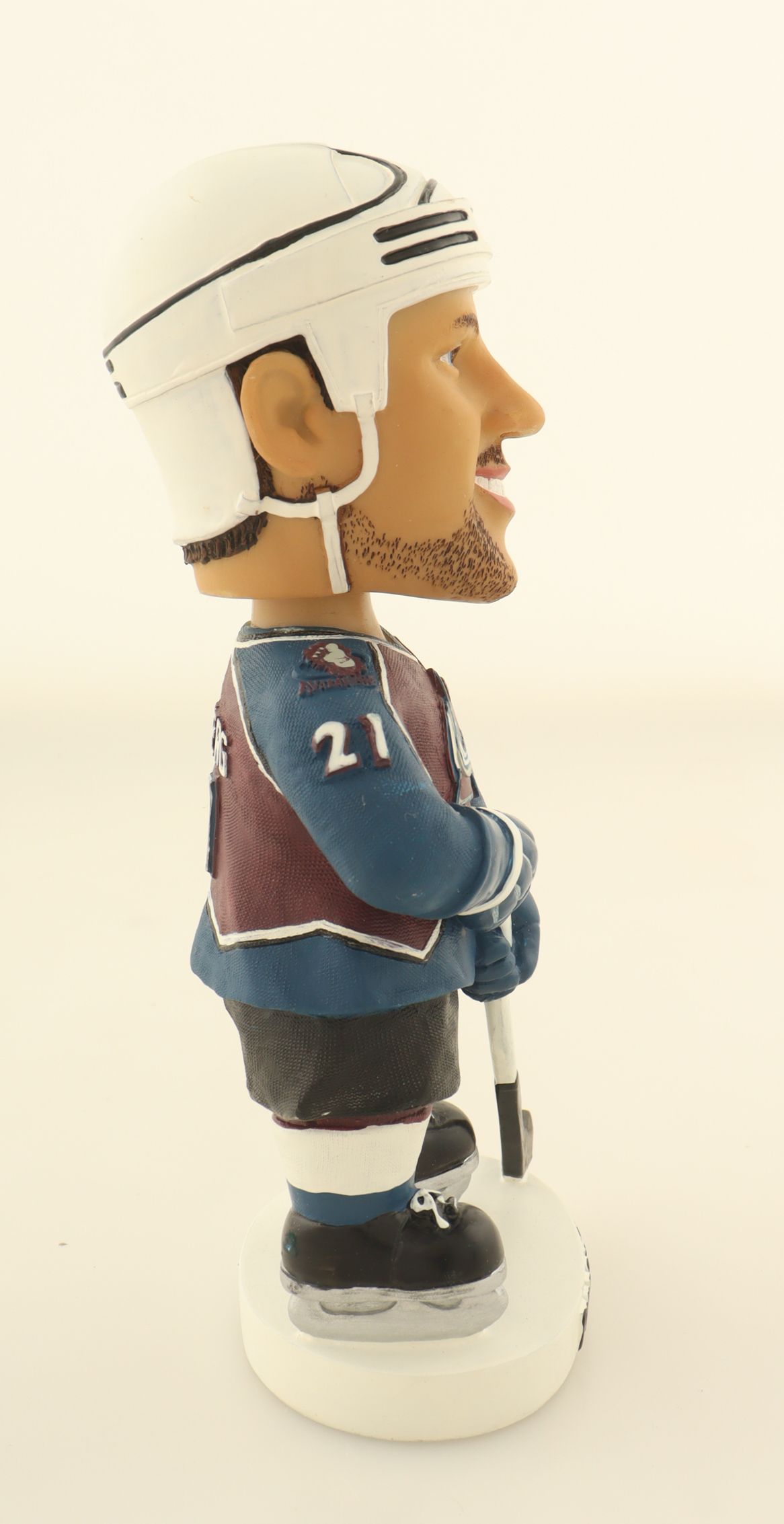 Peter Forsberg Colorado Avalanche vintage hand painted head figure measures approximately 8" tall and comes in the original packaging. Please note, the item is unsigned.