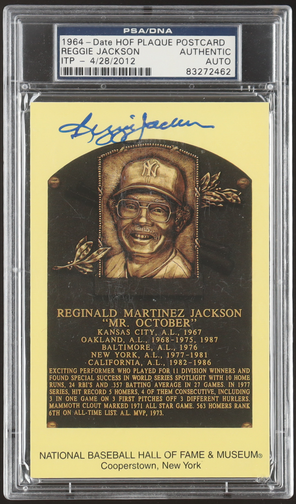 Reggie Jackson Signed Hall Of Fame Plaque Postcard (PSA)
