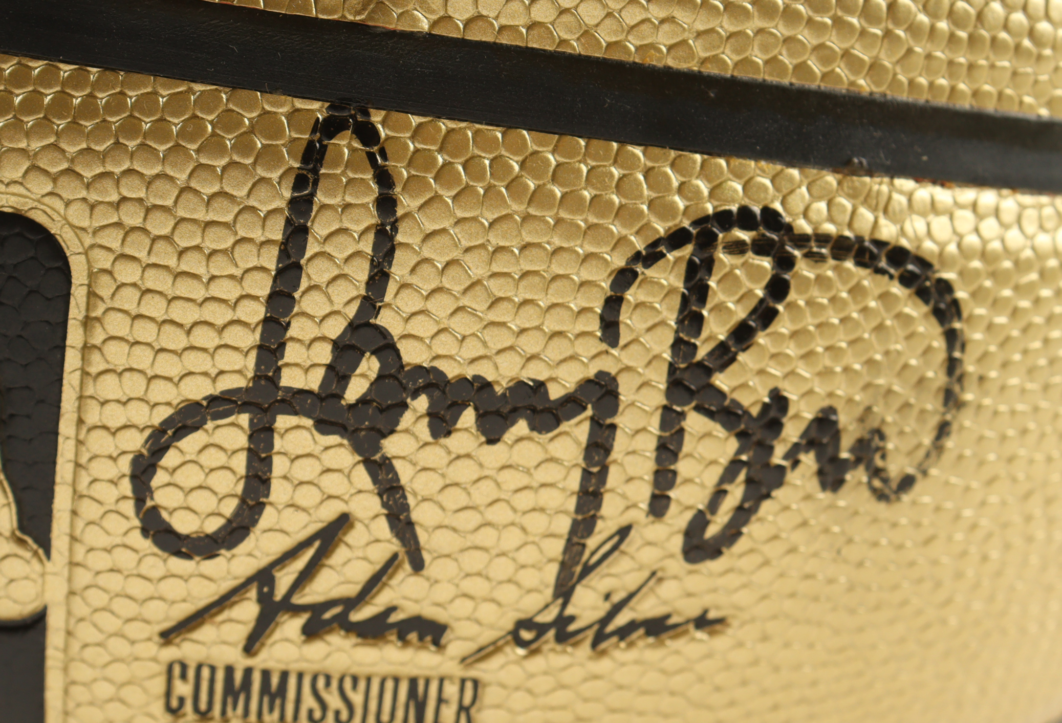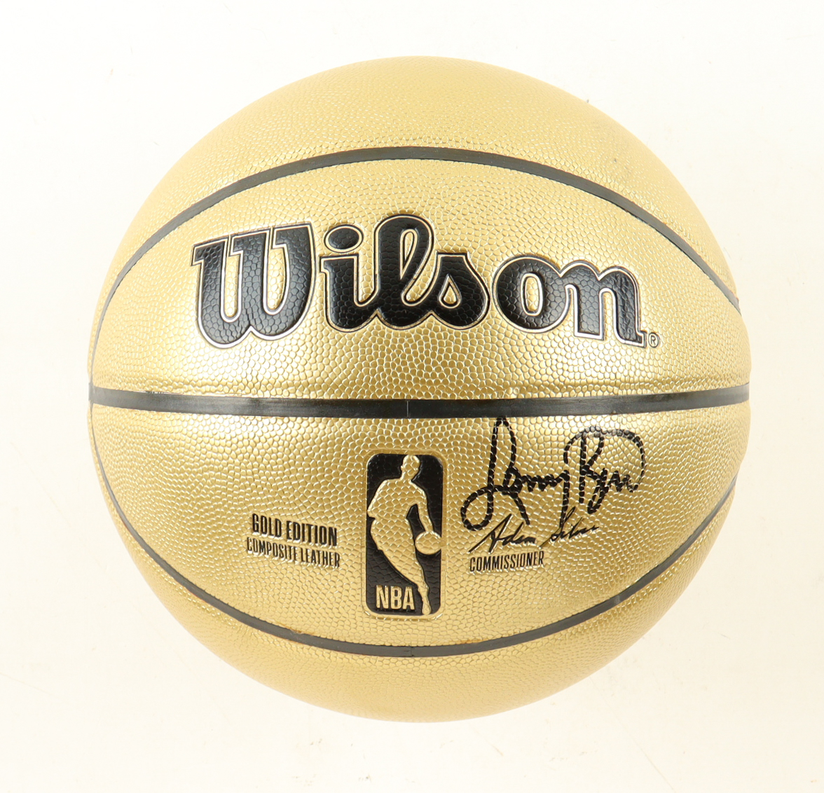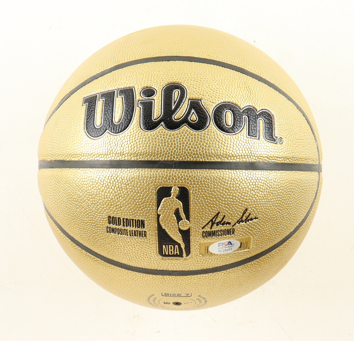 Larry Bird Signed NBA Gold Edition Basketball with Name Plaque (PSA)