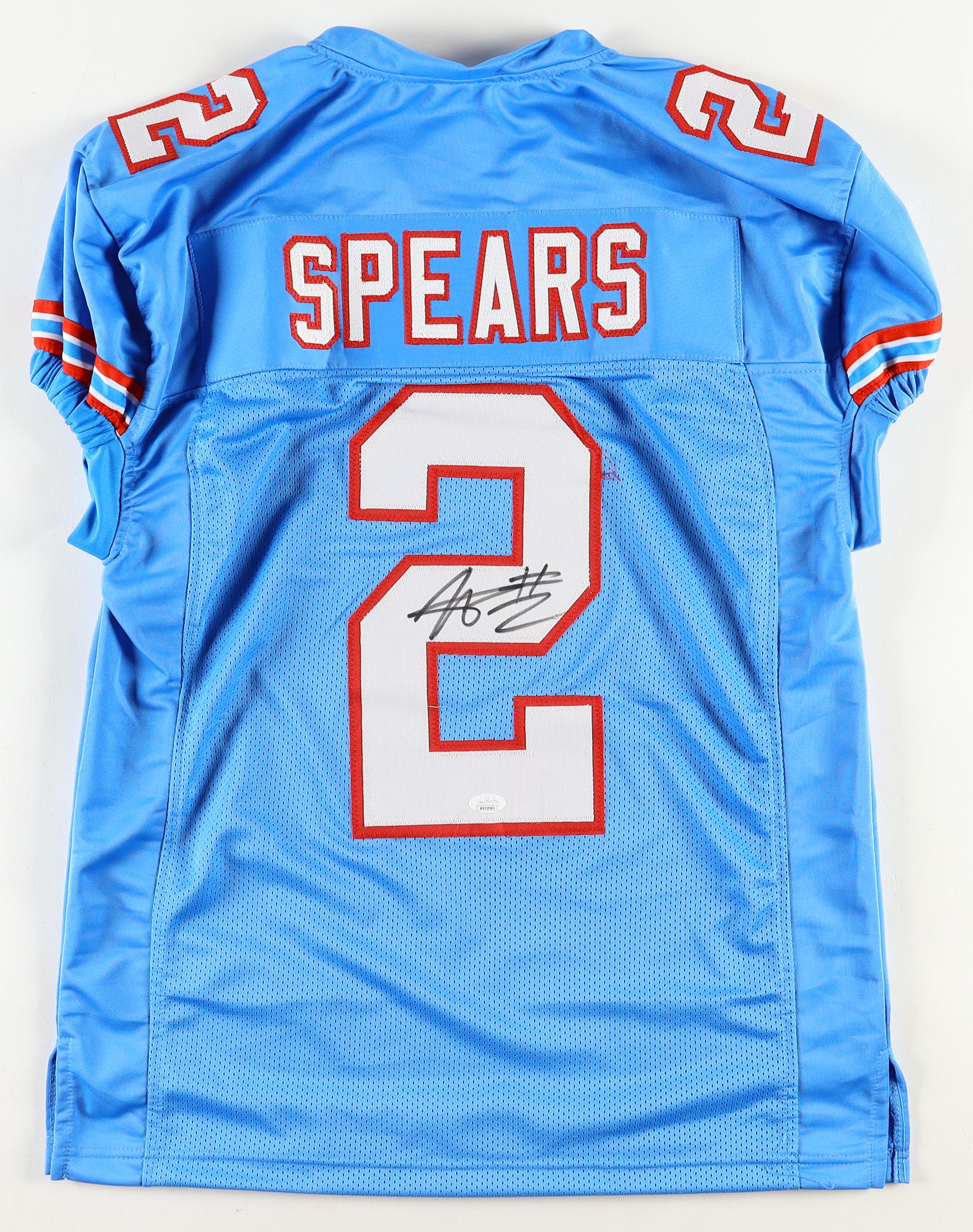 Custom jersey. Everything sewn on, size XL. Hand-signed by Tyjae Spears.
