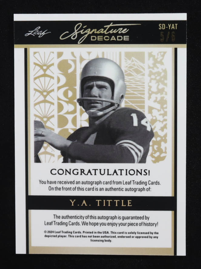 Y. A. Tittle 2024 Leaf Sports Heroes Signature Decade '50s Light Blue Prismatic #5/6
