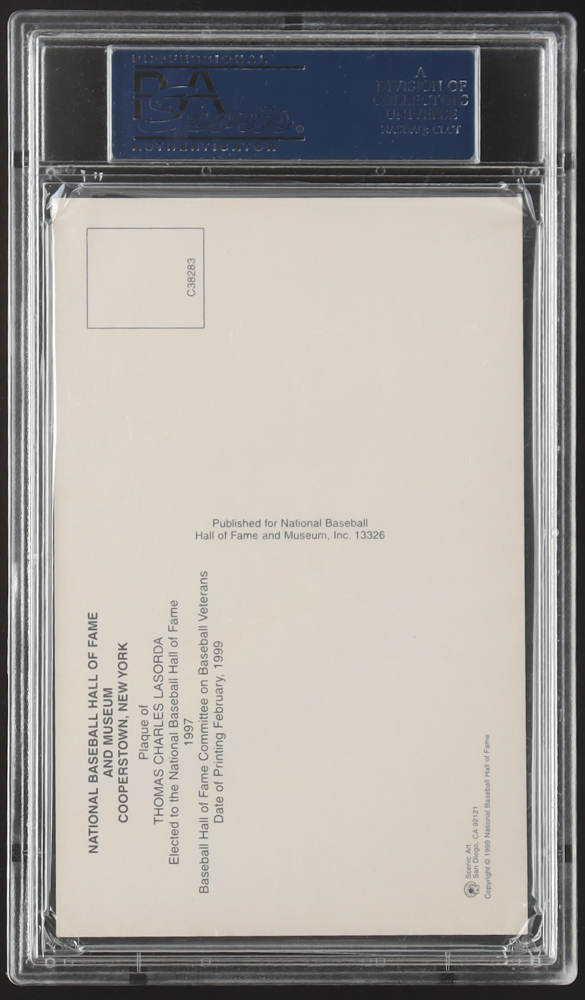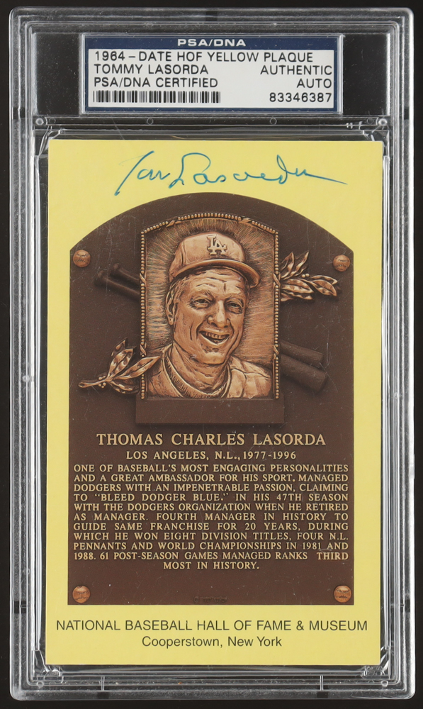 Tommy Lasorda Signed Hall Of Fame Plaque Postcard (PSA)