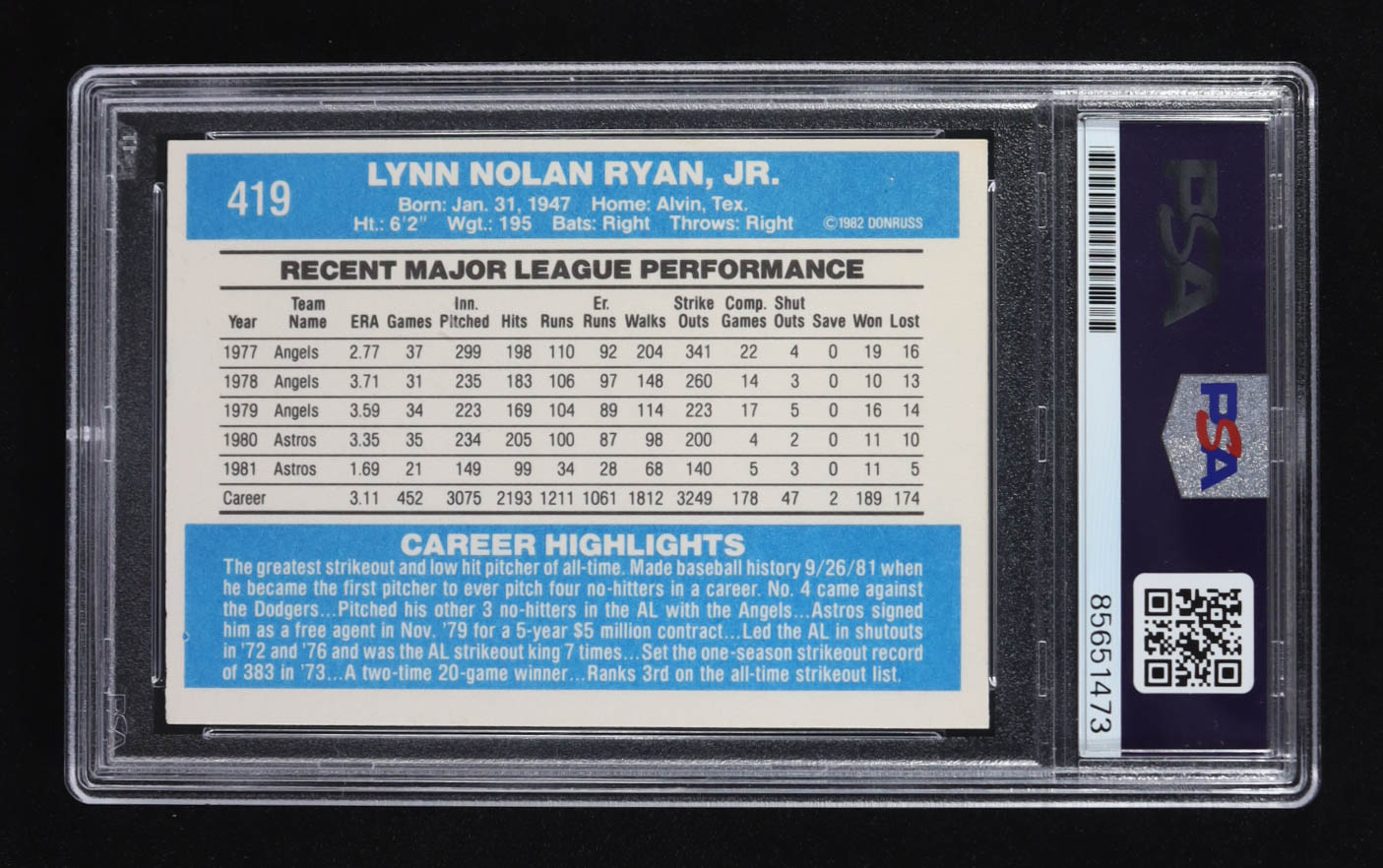 Nolan Ryan Signed 1982 Donruss #419 (PSA | Auto 10)