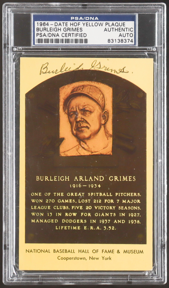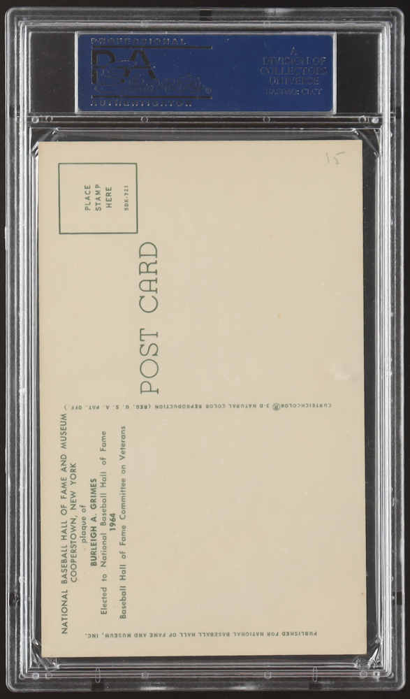 Burleigh Grimes Signed 1964 Hall Of Fame Plaque Postcard (PSA)