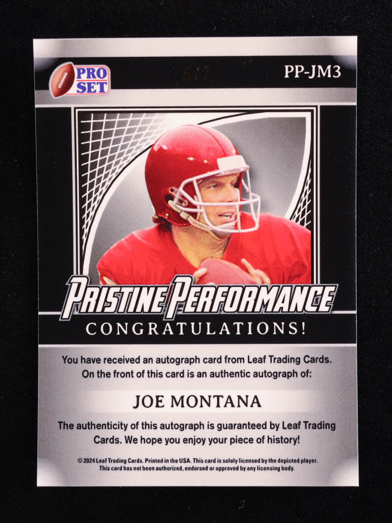 Joe Montana 2024 Leaf Metal Legacy Collection "Pristine Performance" #PP-JM3 Autograph Pink Prismatic SP Variation #/7