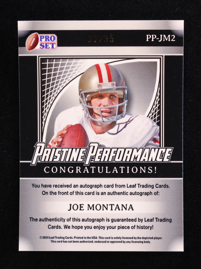 Joe Montana 2024 Leaf Metal Legacy Collection "Pristine Performance" #PP-JM2 Autograph Silver Prismatic SP Variation #/35