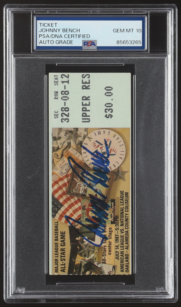 Johnny Bench Signed 1987 All Star Game Ticket (PSA | Autograph Graded PSA 10)