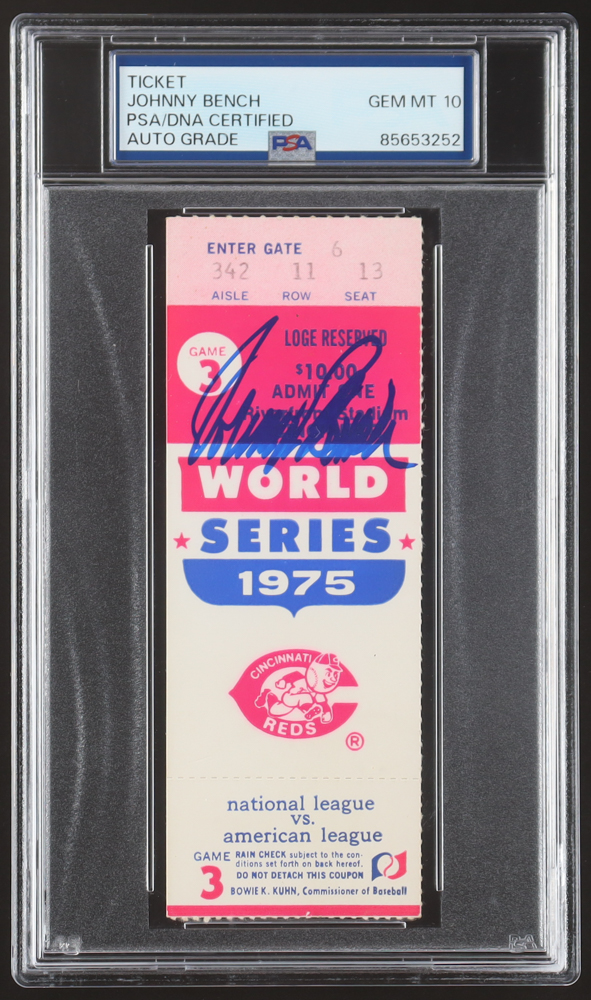 Johnny Bench Signed 1975 World Series Game Ticket (PSA | Autograph Graded PSA 10)