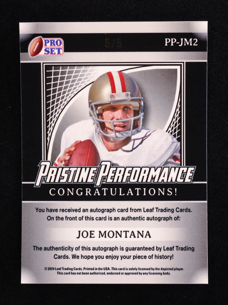 Joe Montana 2024 Leaf Metal Legacy Collection "Pristine Performance" #PP-JM2 Autograph Dark Blue Prismatic SP Variation #/5