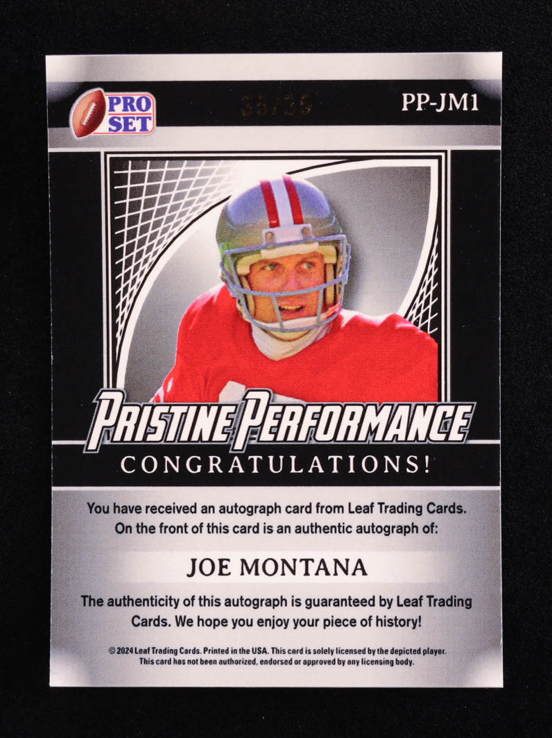 Joe Montana 2024 Leaf Metal Legacy Collection "Pristine Performance" #PP-JM1 Autograph Green Prismatic SP Variation #/35