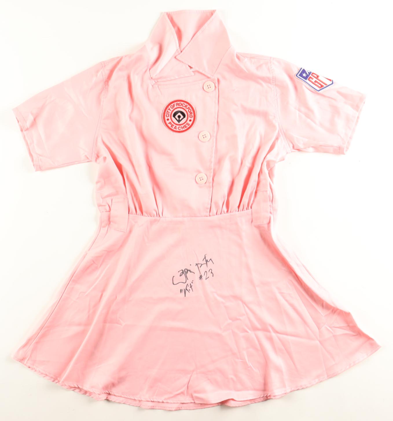 "A League of Their Own" women's baseball jersey has been hand-signed and inscribed by Lori Petty.