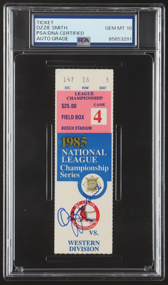 Ozzie Smith Signed 1985 Busch Stadium NLCS Ticket (PSA | Autograph Graded PSA 10)