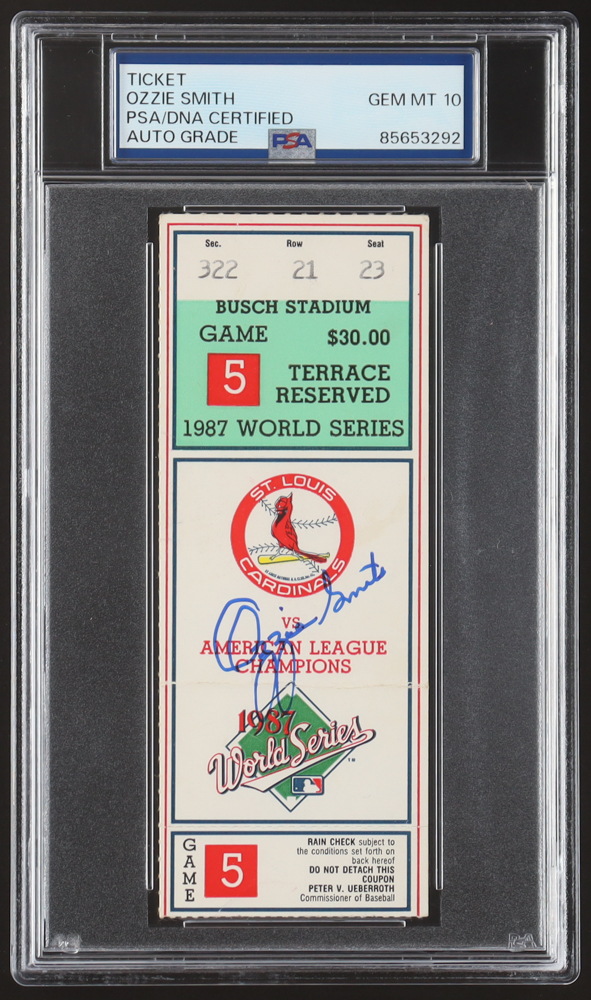 Ozzie Smith Signed 1987 Busch Stadium World Series Ticket (PSA | Autograph Graded PSA 10)