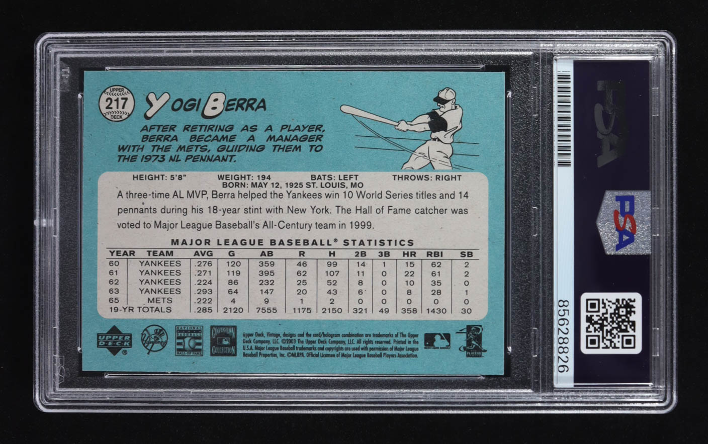 Yogi Berra Signed 2003 Upper Deck Vintage #217 (PSA)