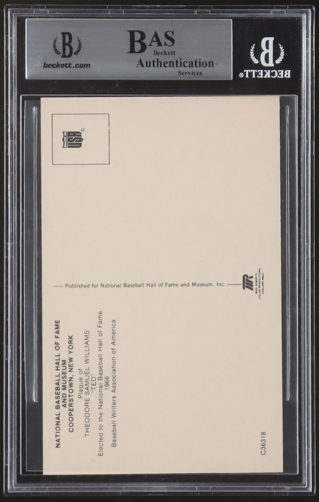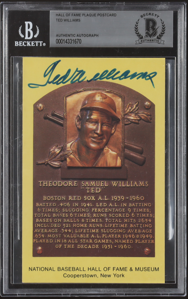 Ted Williams Signed Hall Of Fame Plaque Postcard (BAS)