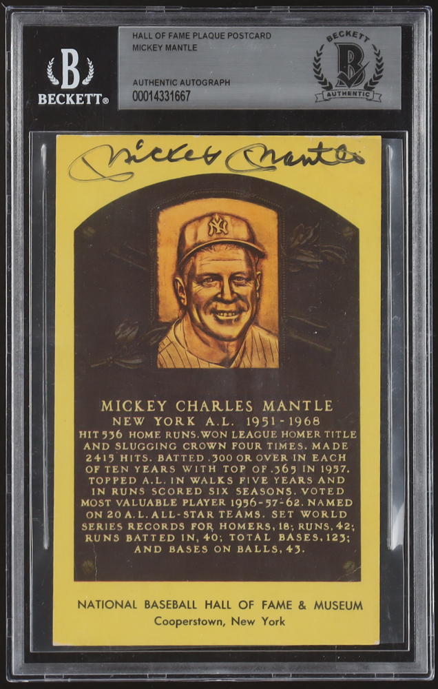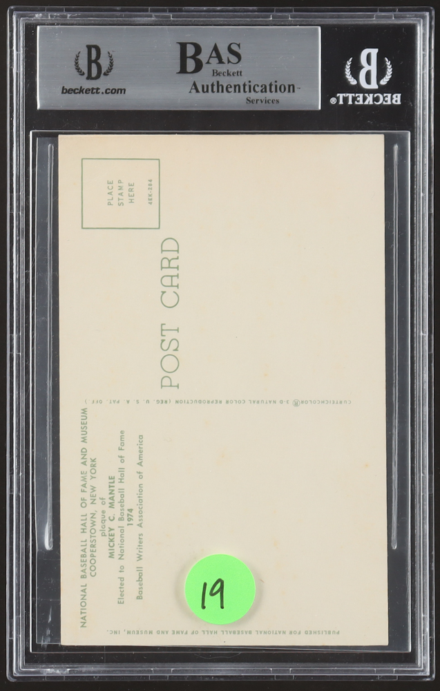 Mickey Mantle Signed Hall Of Fame Plaque Postcard (BAS)