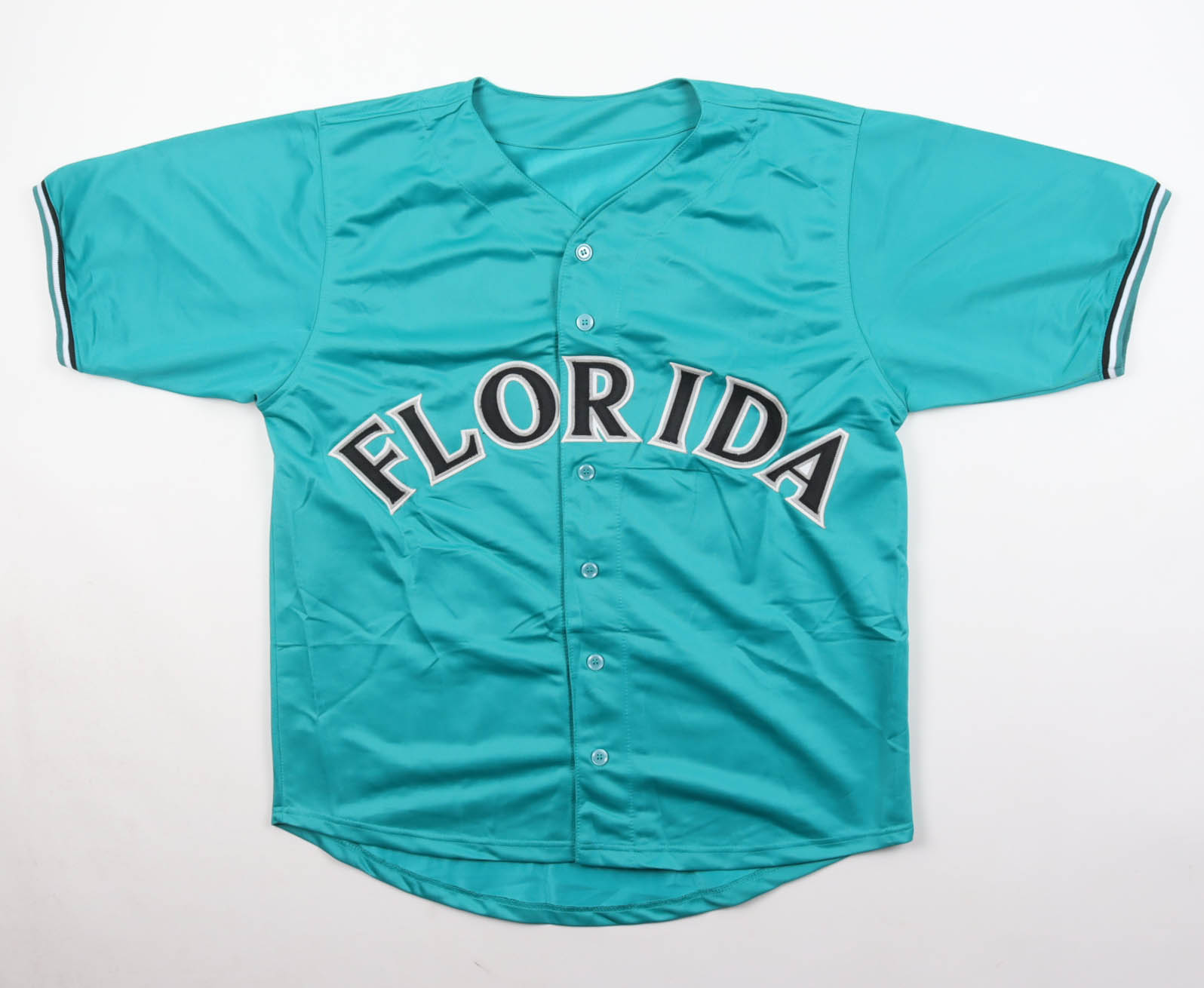 Custom jersey with everything sewn on, size XL. Hand-signed and inscribed by Livan Hernandez.