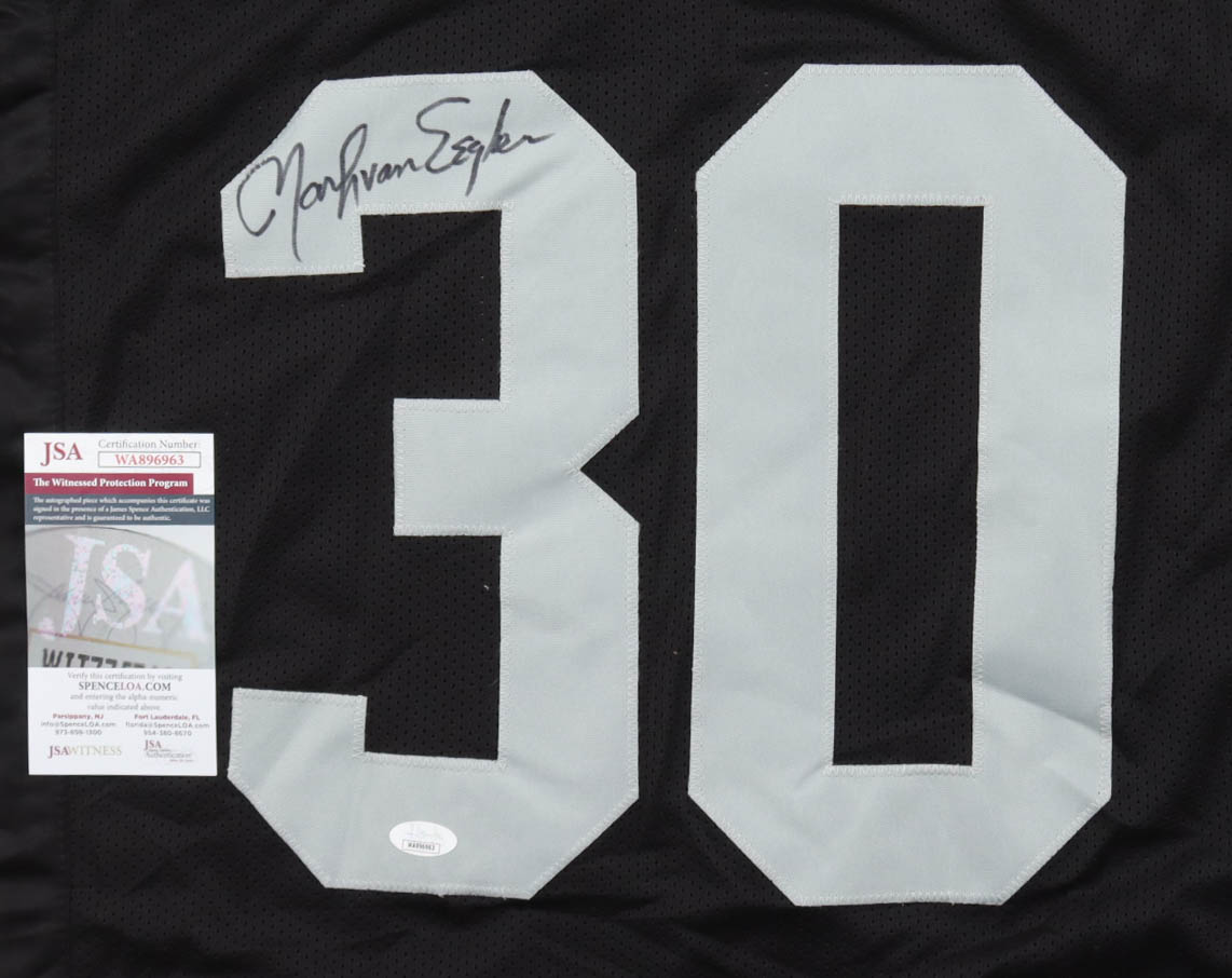 Custom jersey with everything sewn on, size XL. Hand-signed by Mark Van Eeghen.