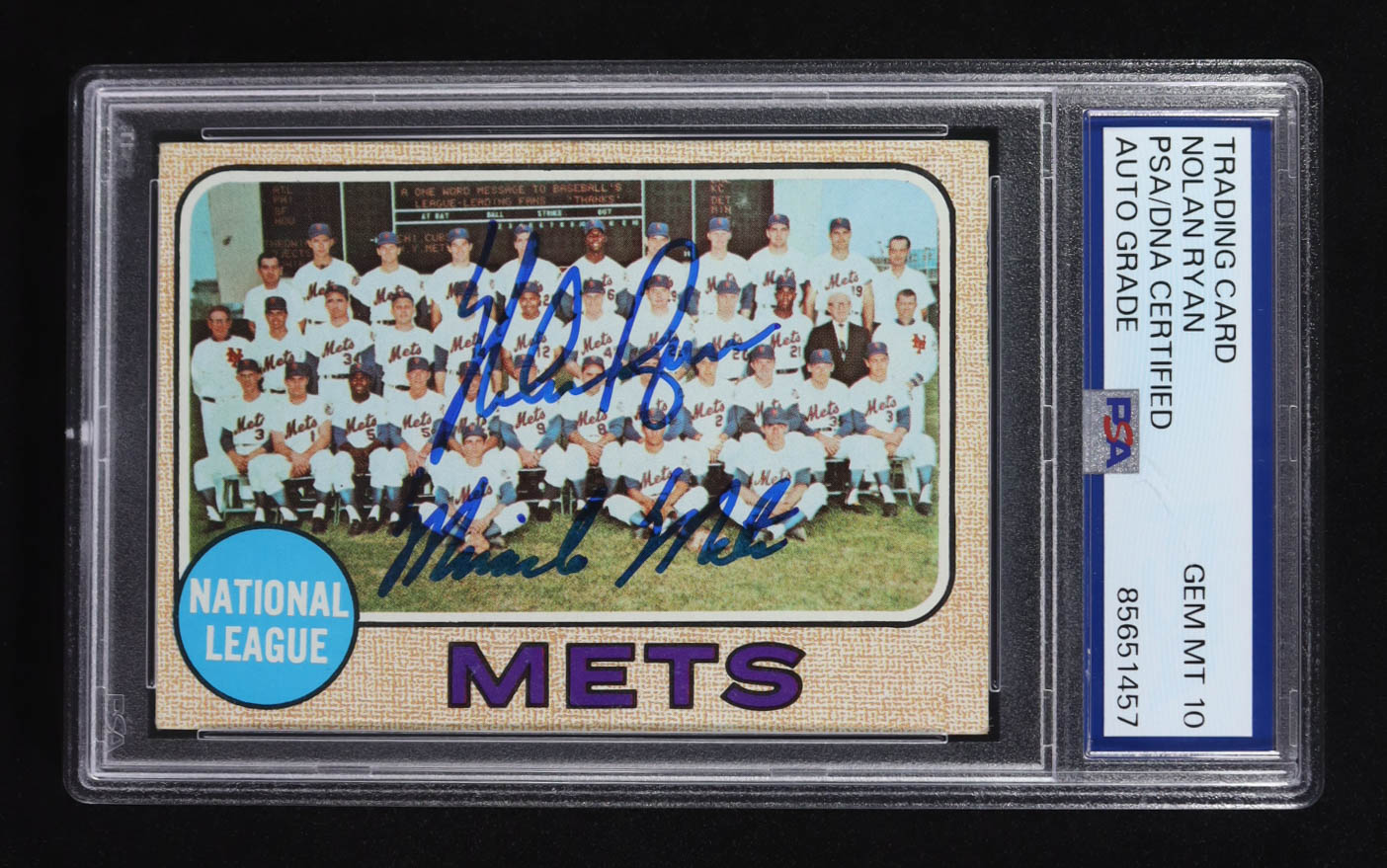 Nolan Ryan Signed 1968 Topps #401 Mets Team "Miracle Mets" (PSA | Auto 10)