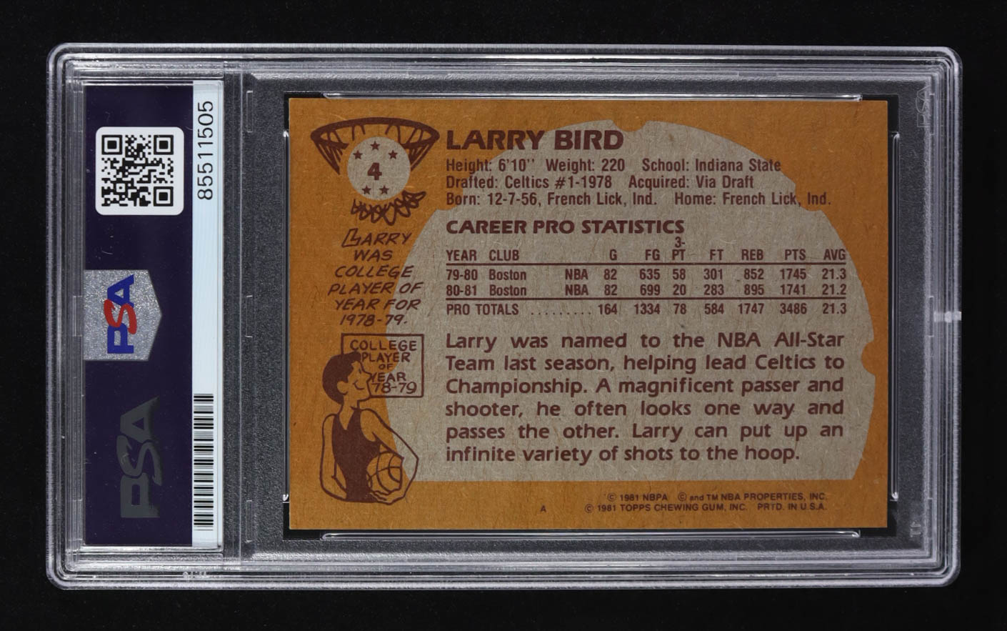Larry Bird Signed 1981-82 Topps #4 (PSA | Auto 10)