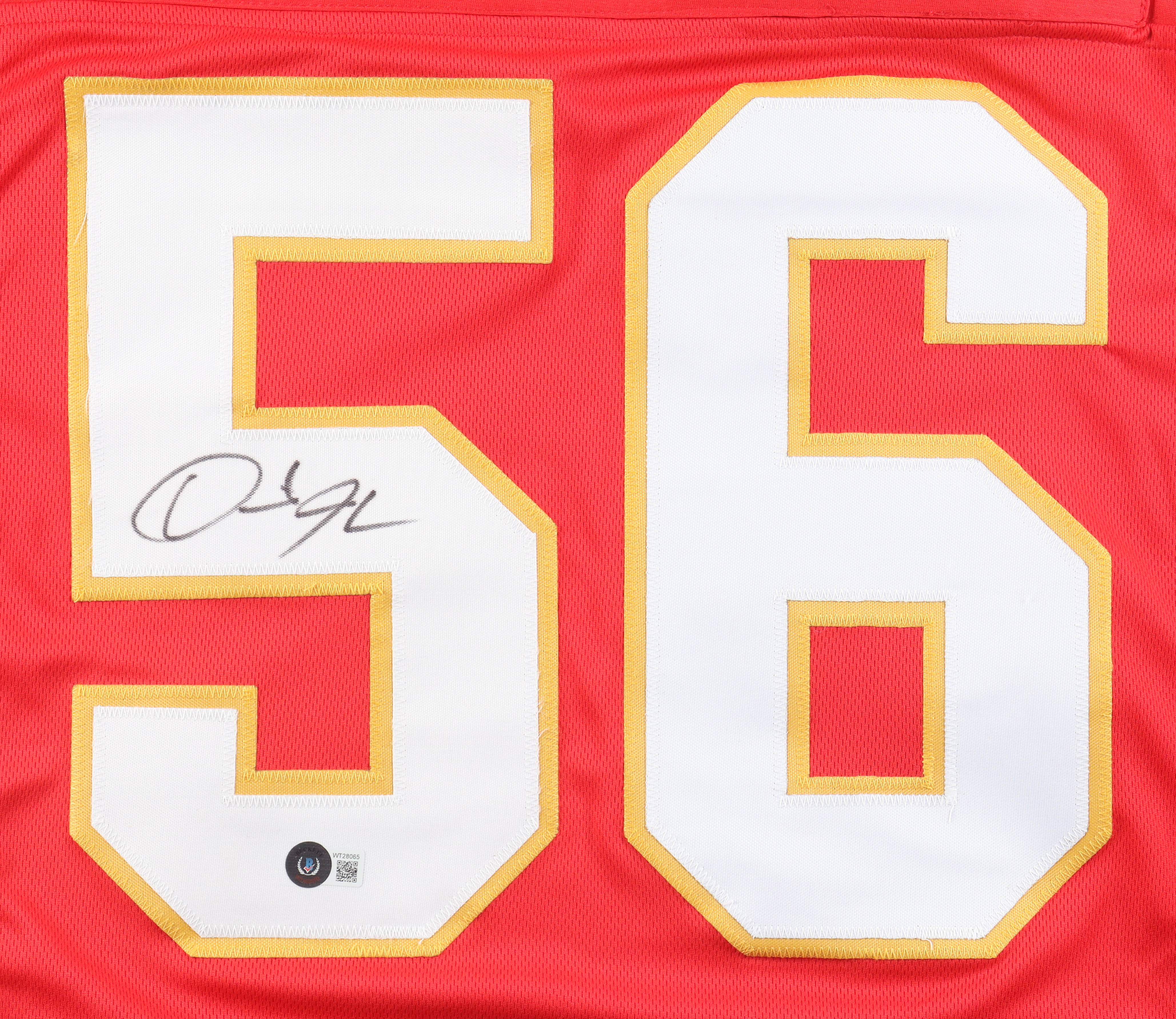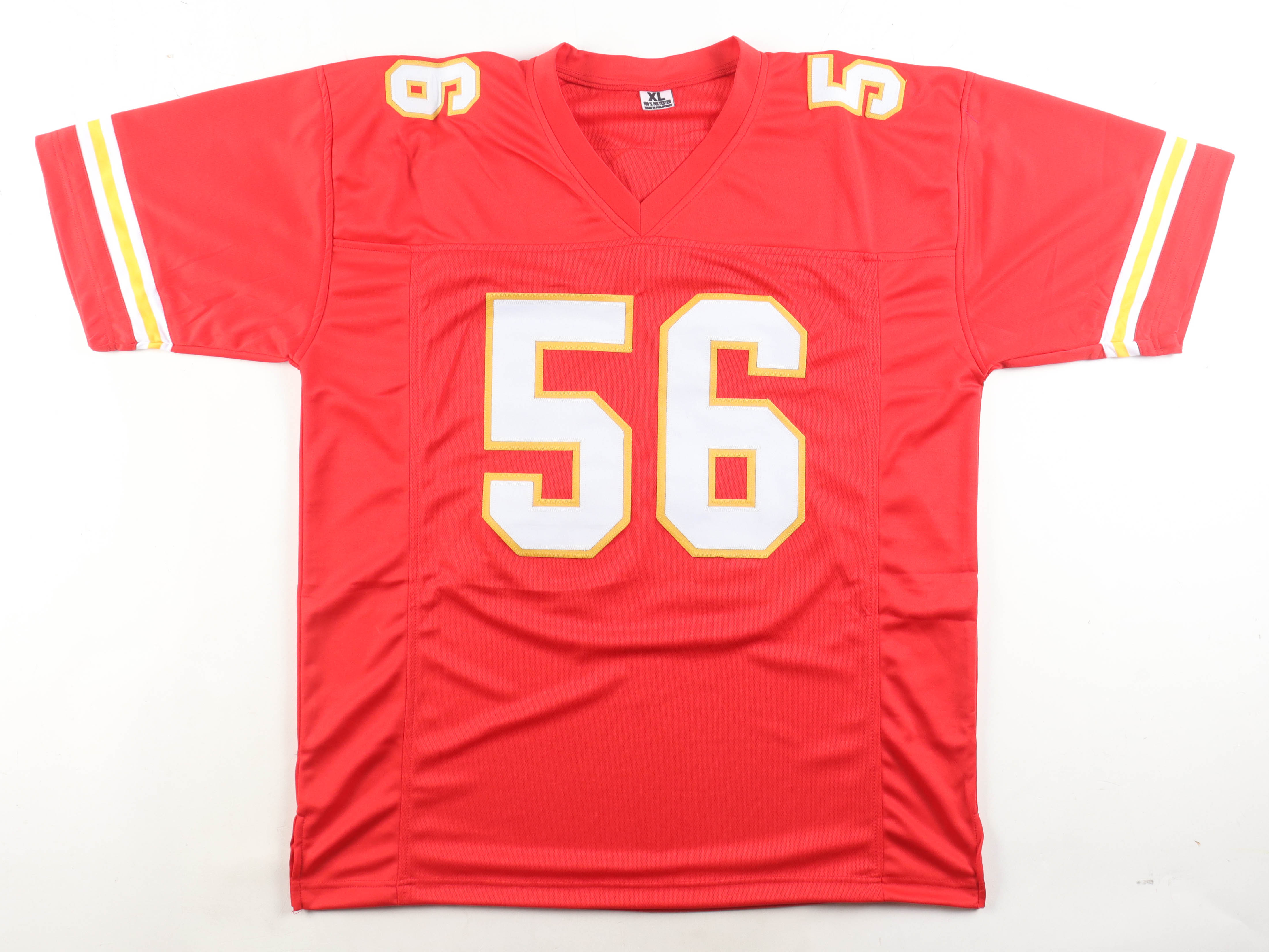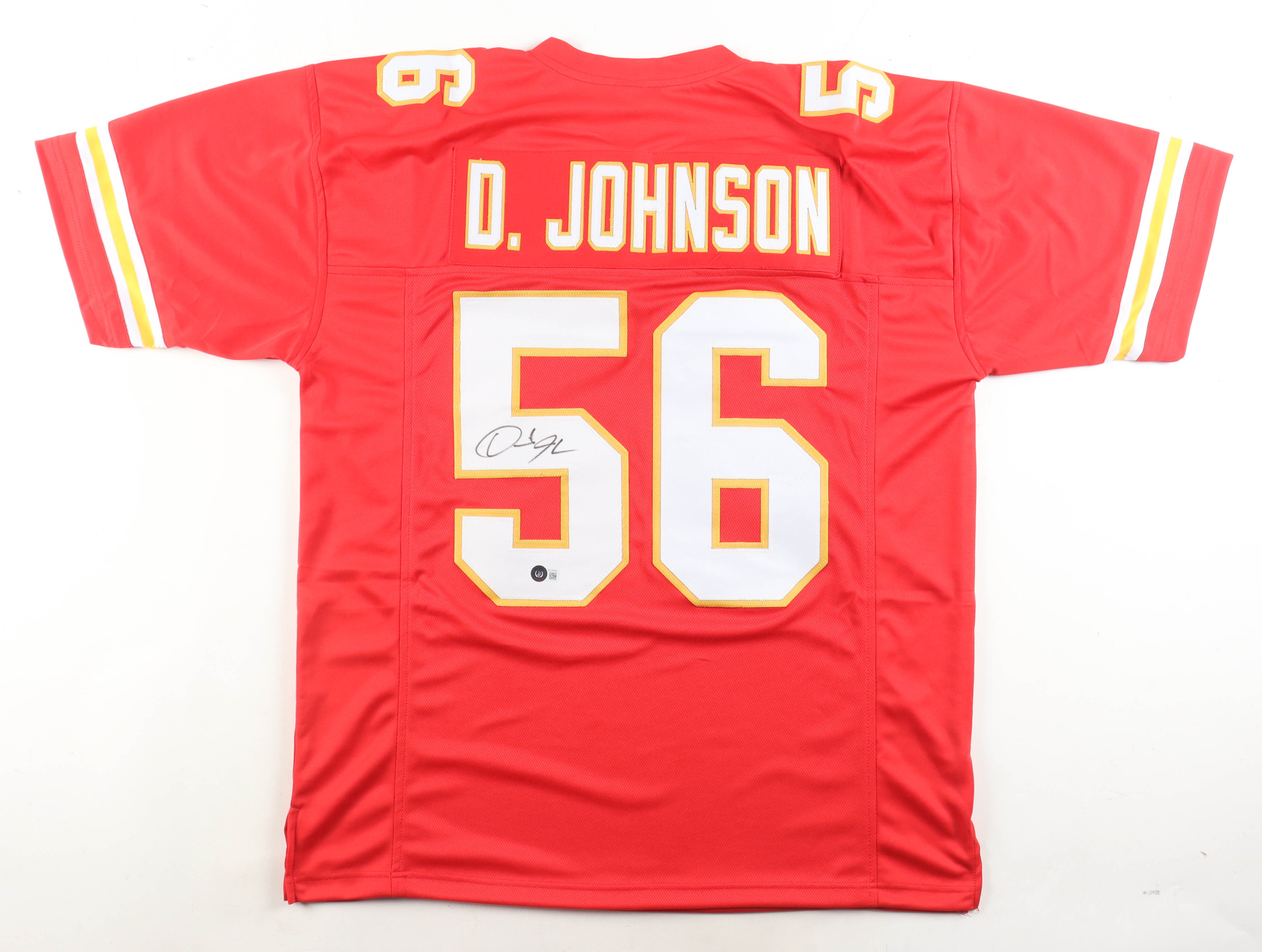 Custom jersey with everything sewn on, size XL. Hand-signed by Derrick Johnson.