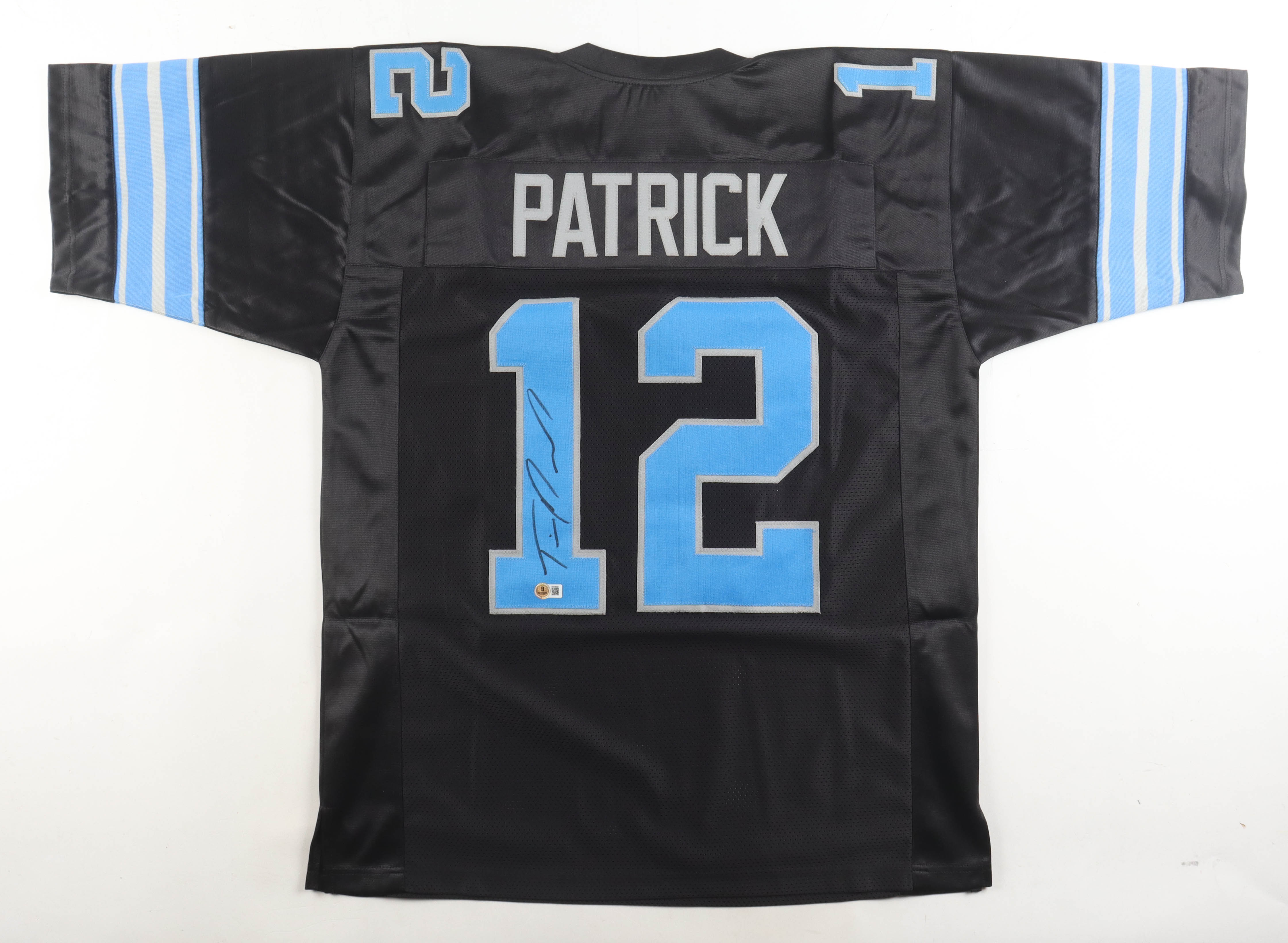Custom jersey with everything sewn on, size XL. Hand-signed by Tim Patrick.