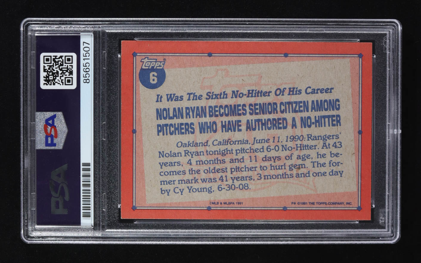 Nolan Ryan Signed 1991 Topps RB #6 Inscribed "The Ryan Express" (PSA | Auto 10)