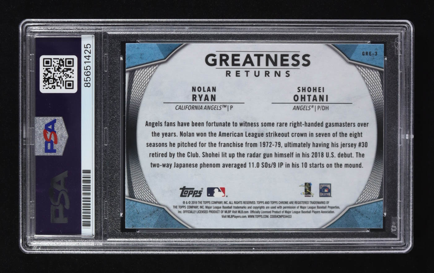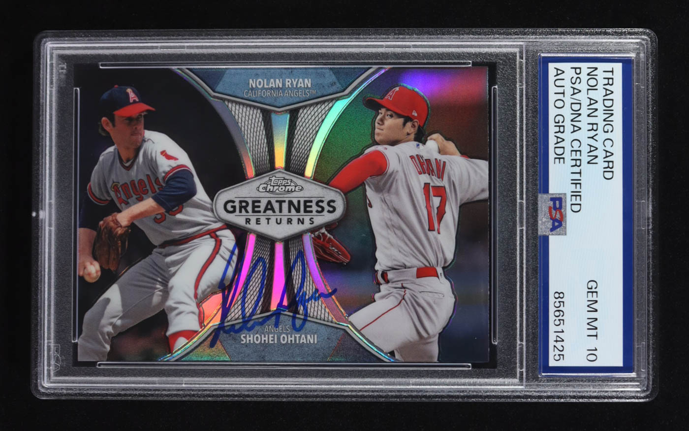Nolan Ryan Signed 2019 Topps Chrome Greatness Returns #GRE3 with Ohtani Signed (PSA | Auto 10)