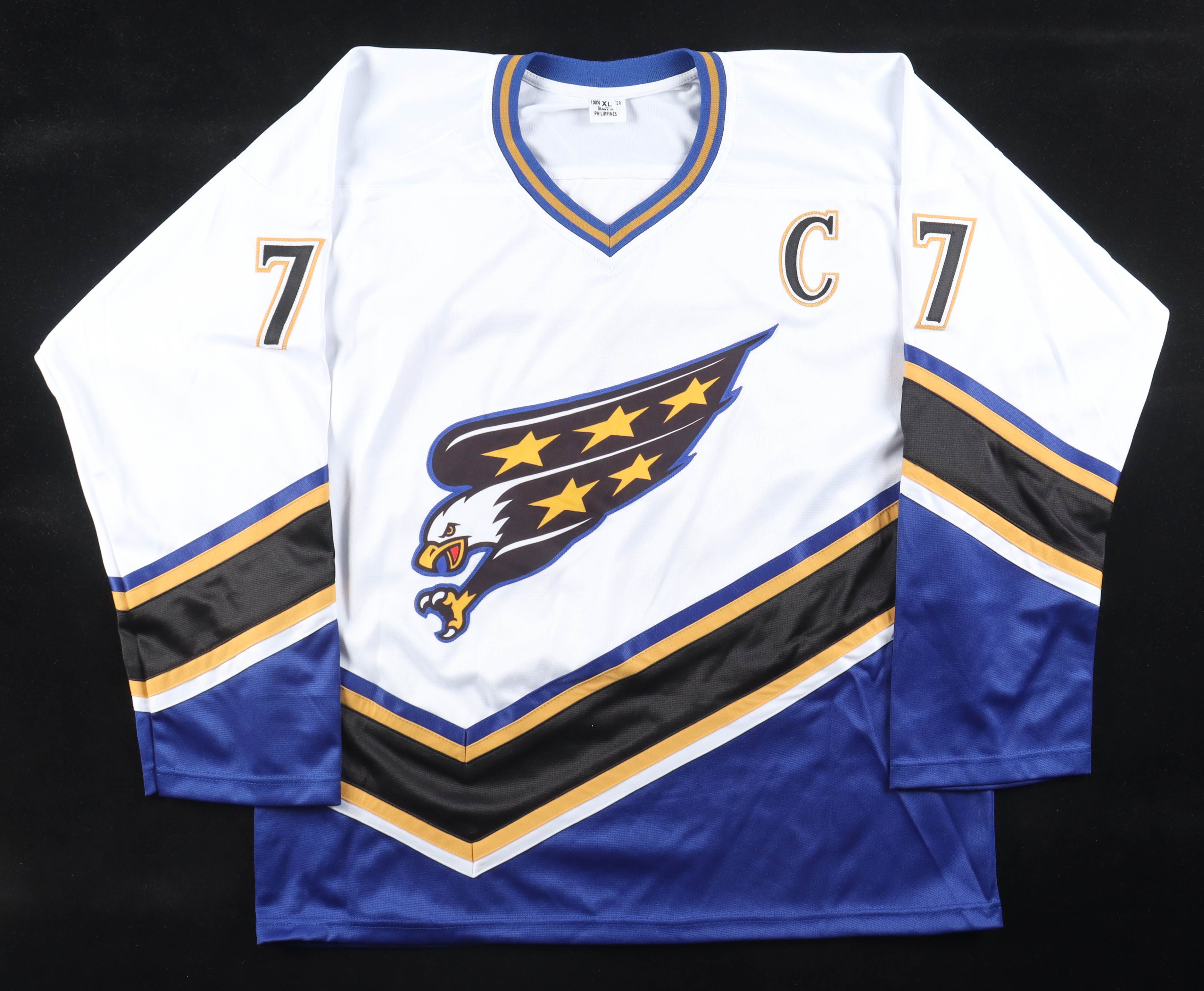 Custom jersey with everything sewn on, size XL. Hand-signed and inscribed by Adam Oates (HOF).