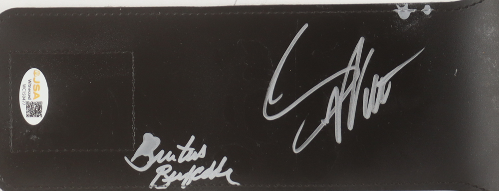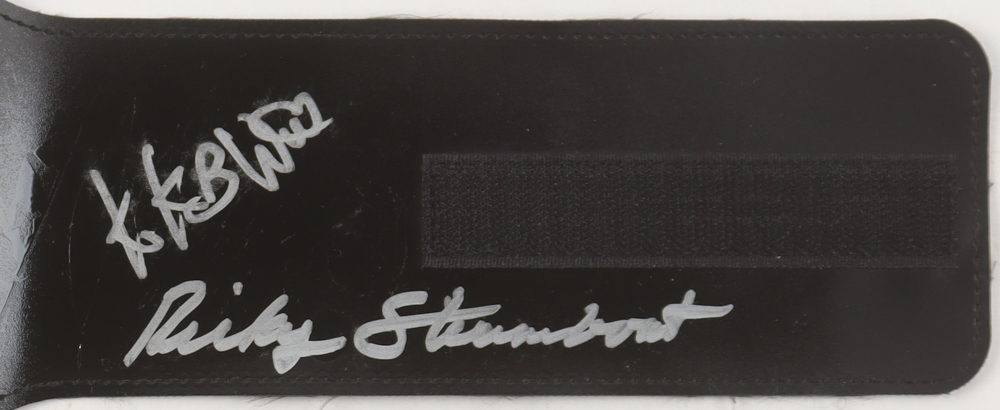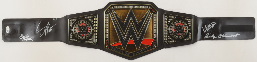 WWE plastic toy replica championship belt. Measures approximately 39" in length. Hand-signed and inscribed by Ricky Steamboat (HOF), Greg Valentine, Brutus Beefcake (HOF), and KoKo B. Ware (HOF).