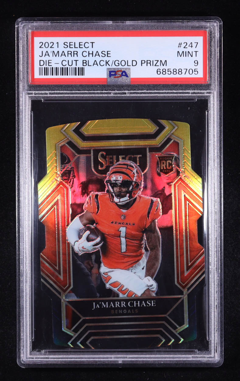 Ja'Marr Chase 2021 Select Prizm Black and Gold Die Cut #247 RC (PSA 9)
