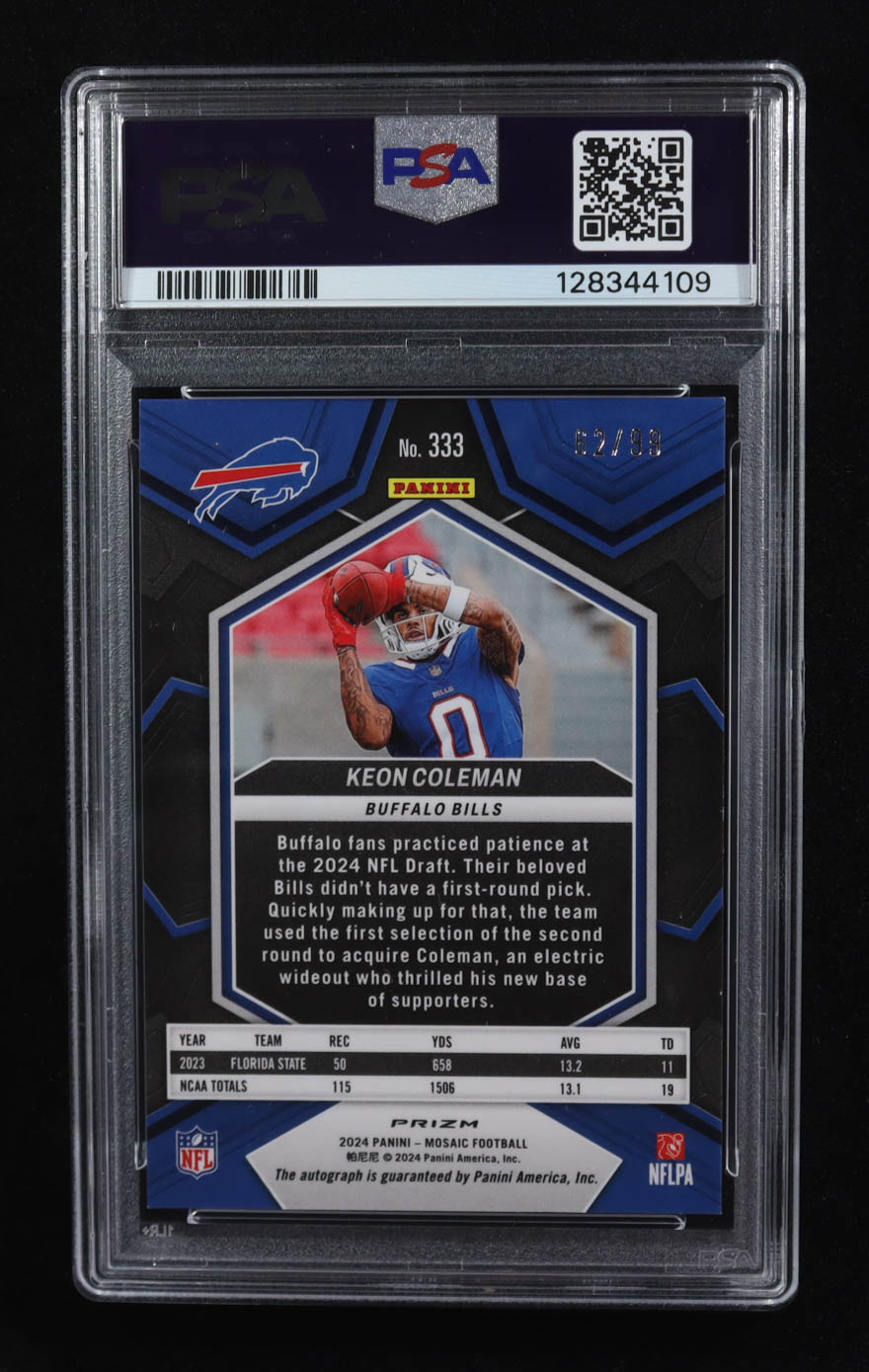Keon Coleman 2024 Mosaic Autograph Blue #333 #62/99 RC (PSA 9)