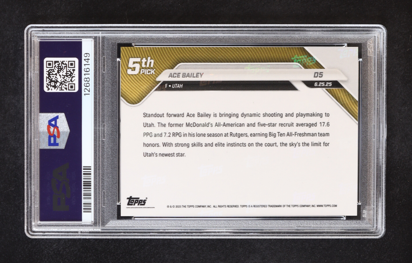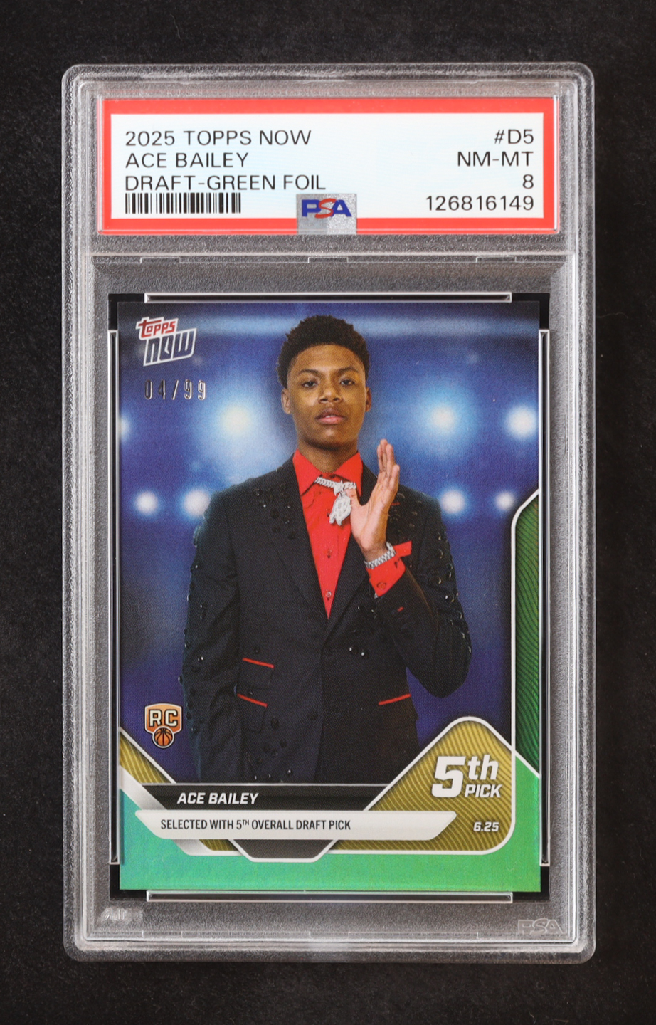 Ace Bailey 2025-26 Topps Now Green Foil #D5 #04/99 RC (PSA 8)