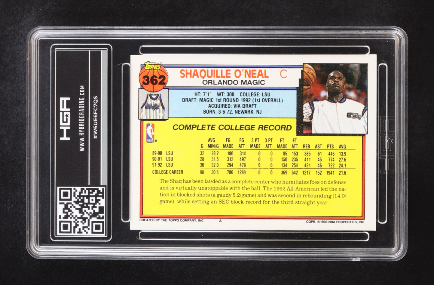 Shaquille O'Neal 1992-93 Topps #362 RC (HGA 9)