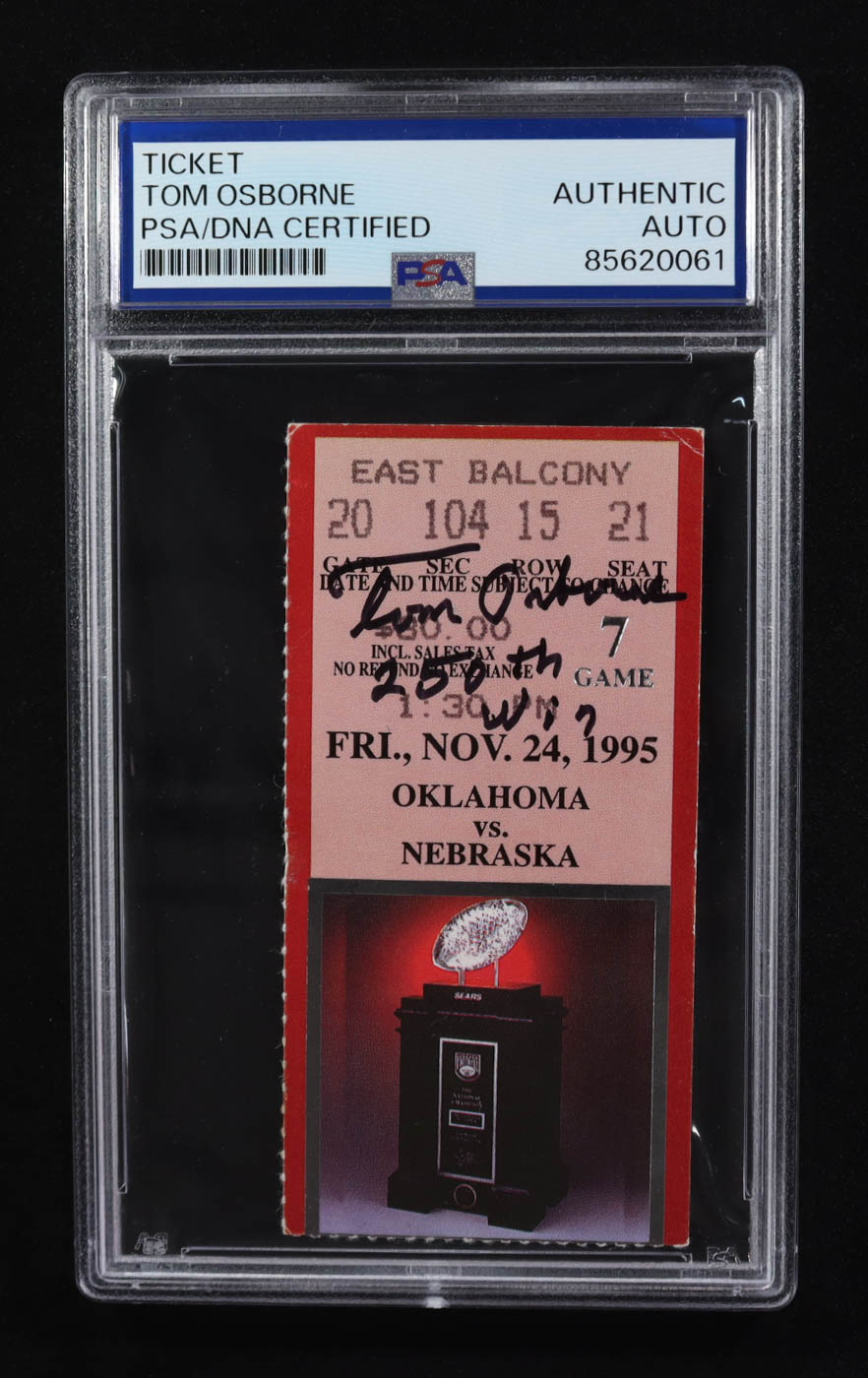 Tom Osborne Signed 1995 Oklahoma vs. Nebraska Ticket Inscribed "250th Win" (PSA)