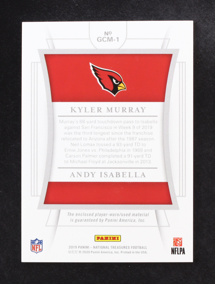 Kyler Murray / Andy Isabella 2024 Panini National Treasures NFL Gear Materials #1 #29/99