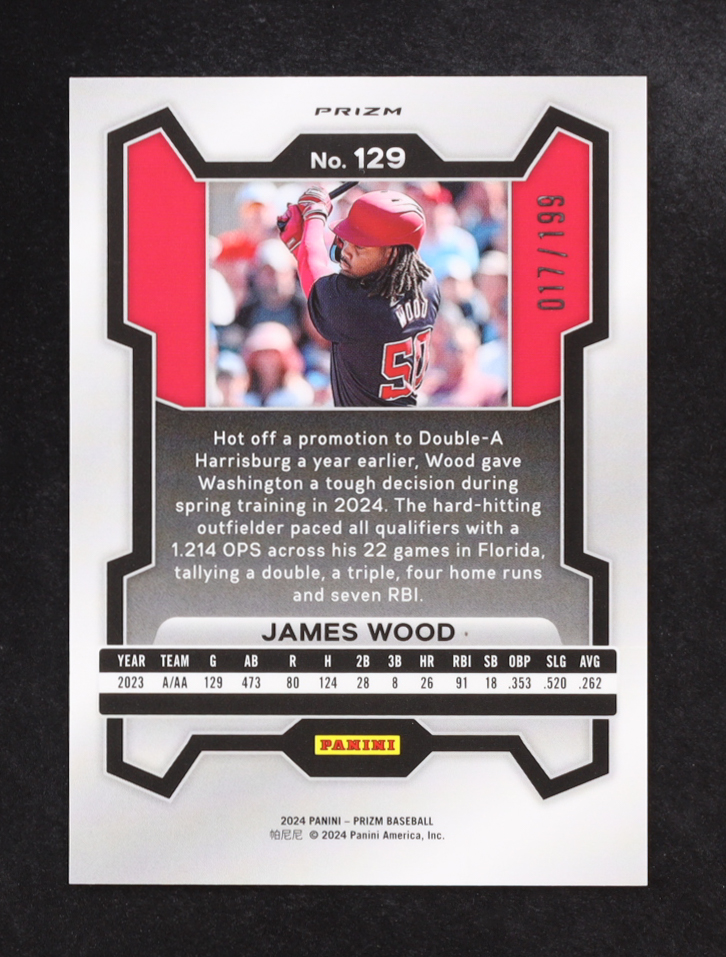 James Wood 2024 Panini Prizm Blue #129 RC #17/199
