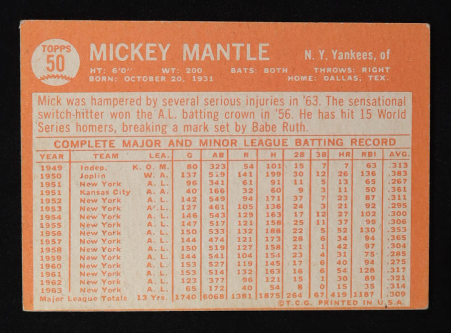 Mickey Mantle 1964 Topps #50