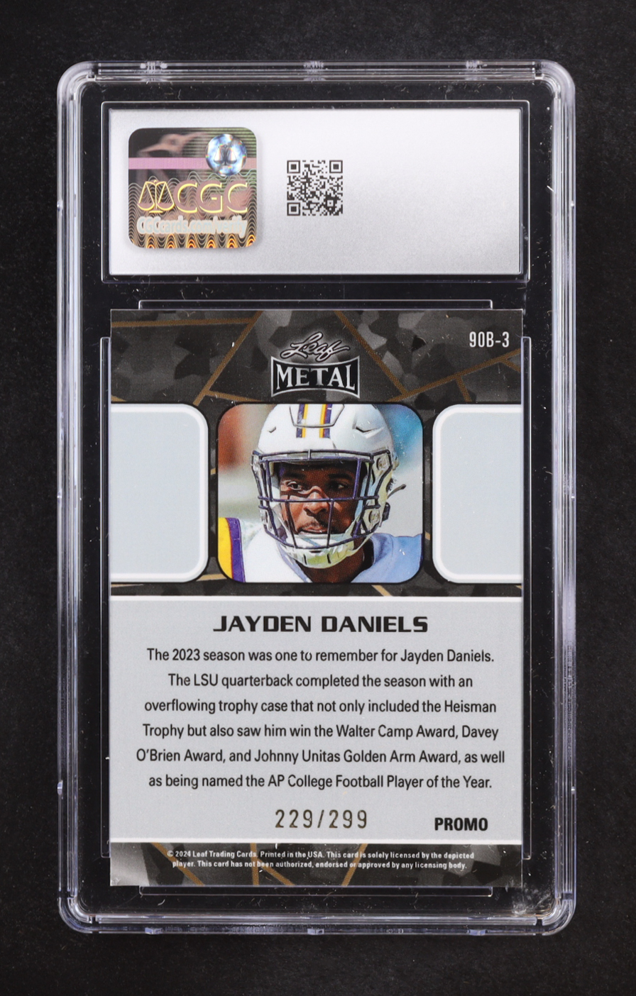 Jayden Daniels 2024 Leaf '90 Collective Promo Orange Shimmer #90B3 RC #229/299 (CGC 10)