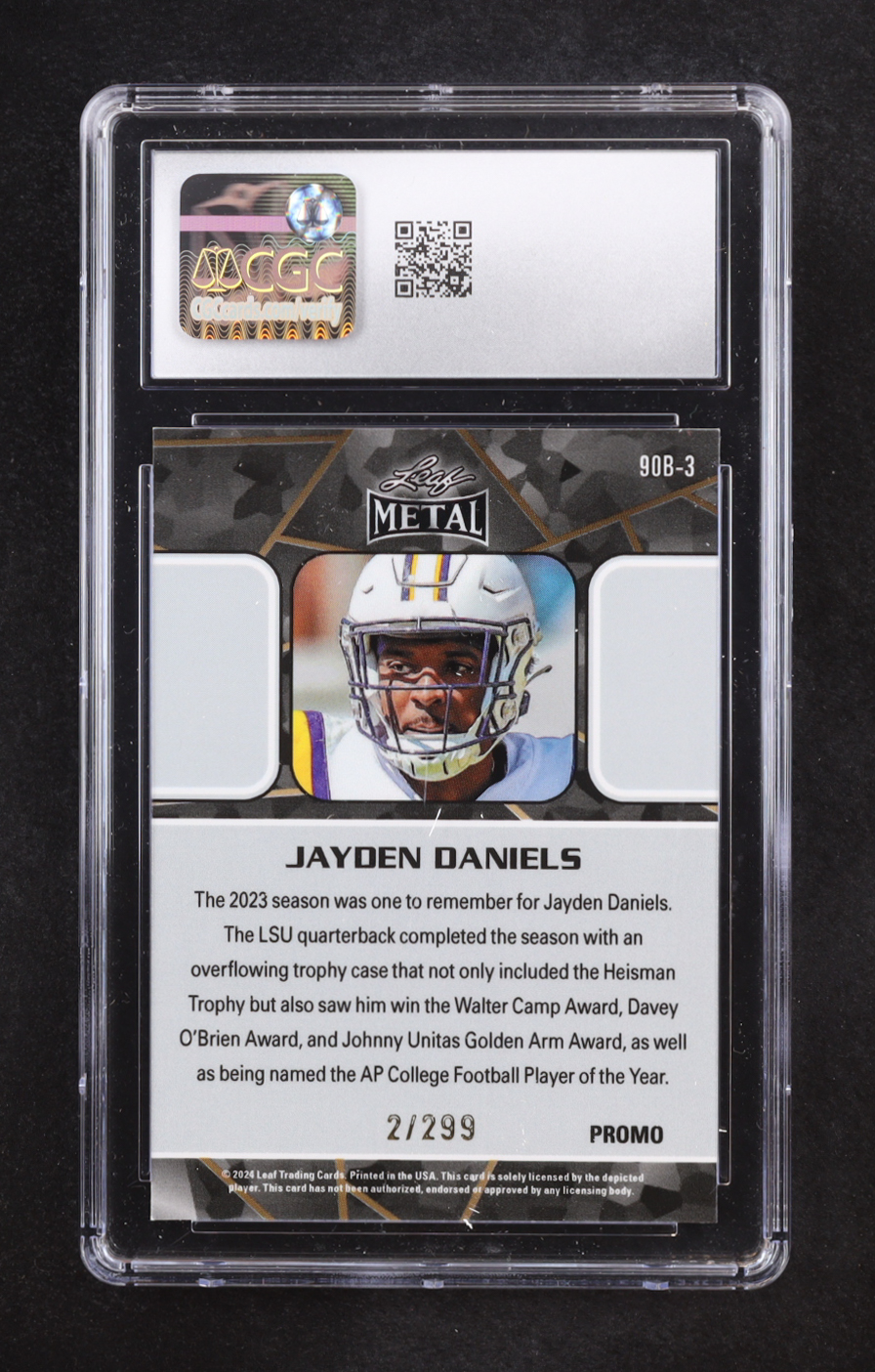 Jayden Daniels 2024 Leaf '90 Collective Promo Orange Shimmer #90B3 RC #2/299 (CGC 10)