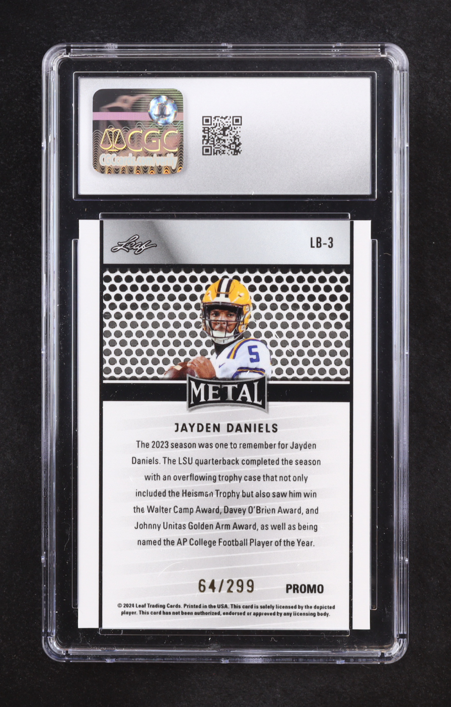 Jayden Daniels 2024 Leaf '90 Collective Promo Orange Shimmer #90B3 RC #64/299 (CGC 10)
