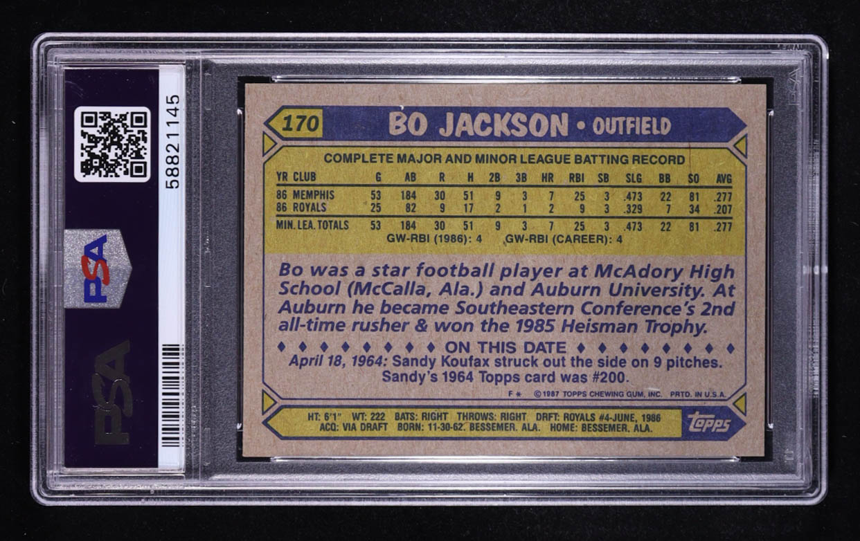 Bo Jackson 1987 Topps Future Stars #170 RC (PSA 9)