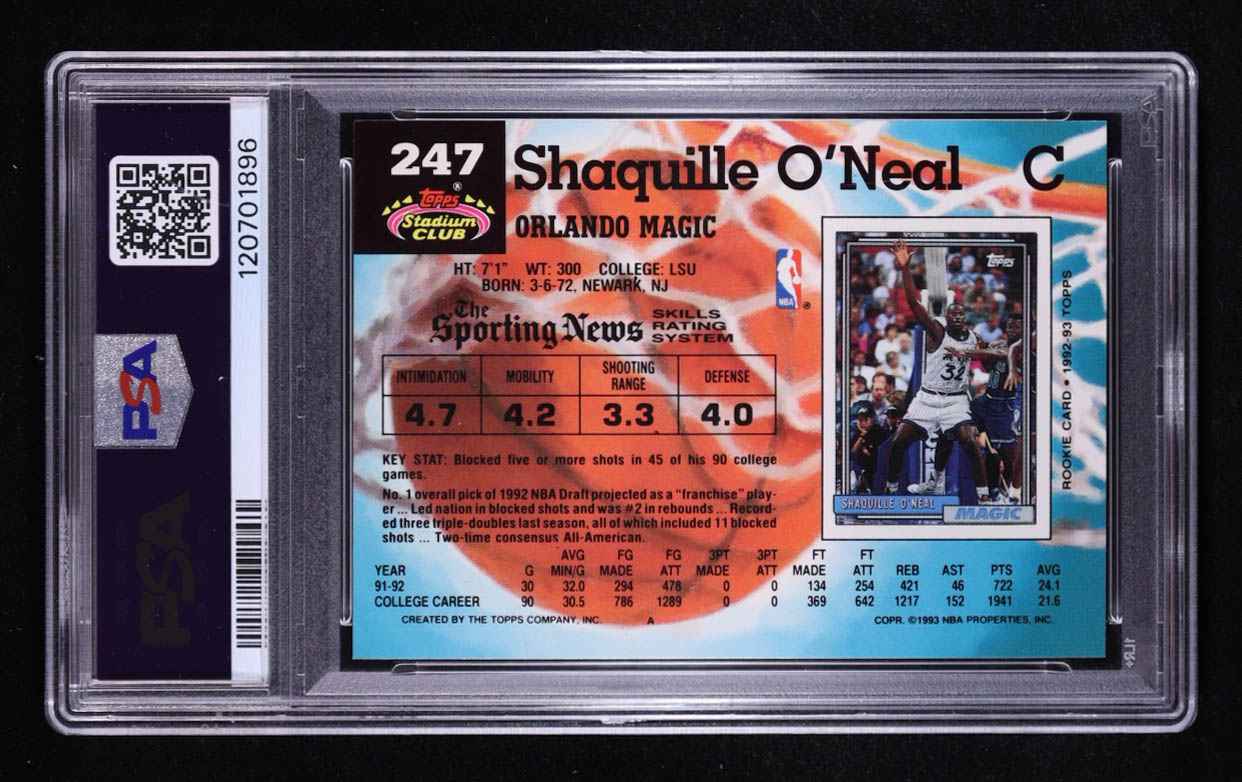 Shaquille O'Neal 1992 Topps Stadium Club #247 RC (PSA 9)