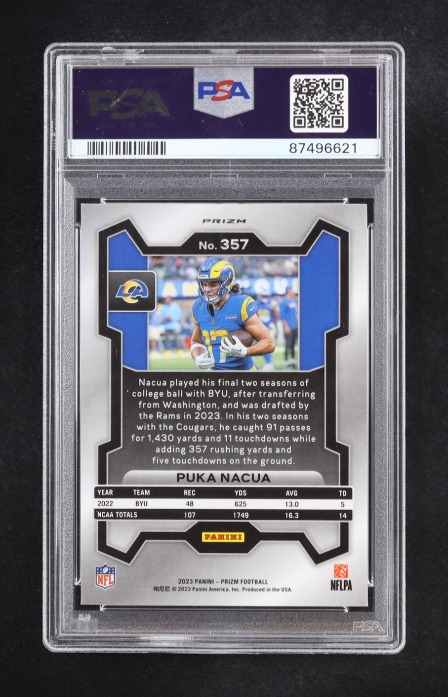 Puka Nacua 2023 Panini Prizm Red, White & Blue #357 RC (PSA 10)