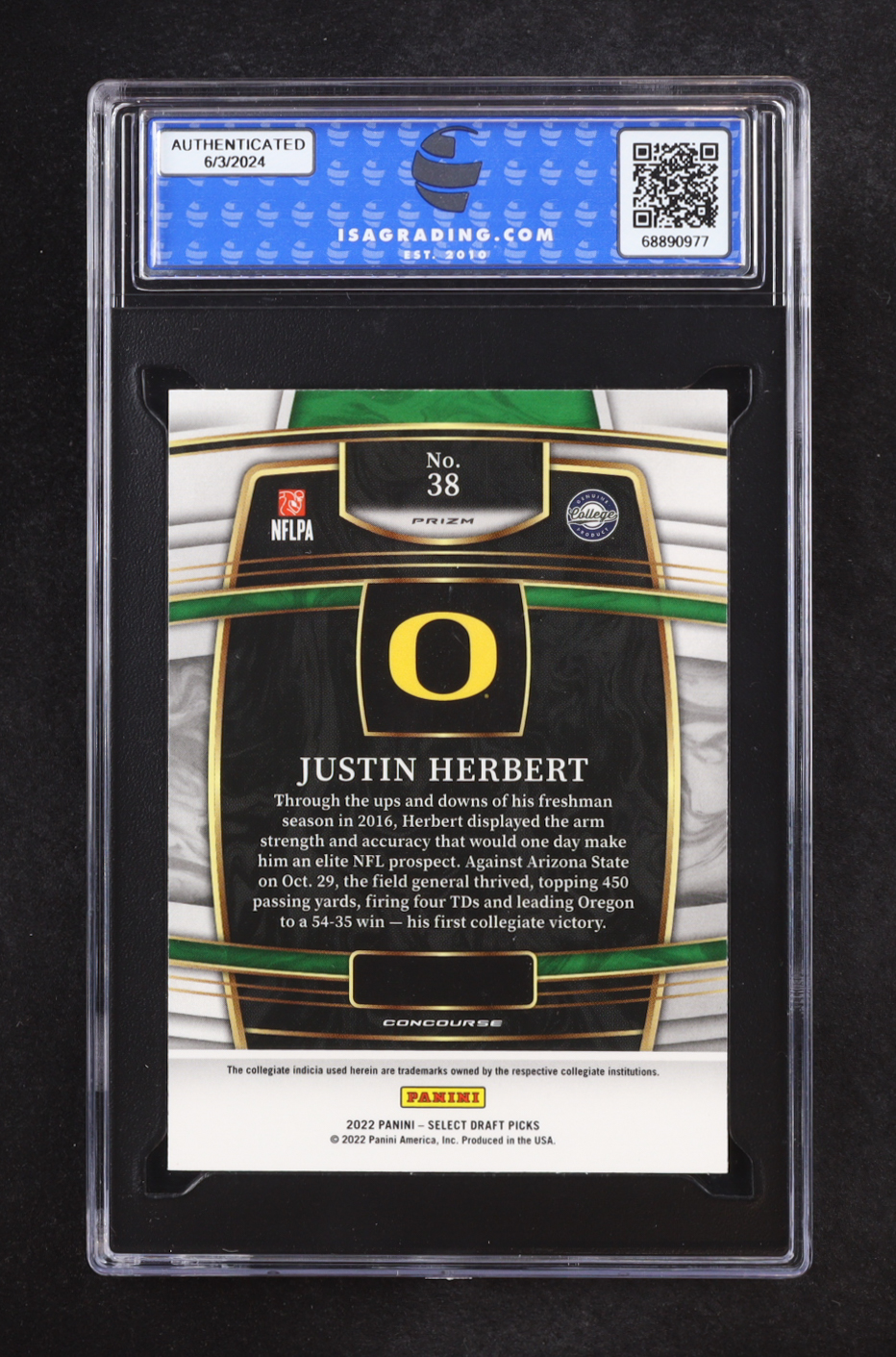 Justin Herbert 2022 Panini Select Draft Picks Red Lazer Prizm #38 (ISA 9)